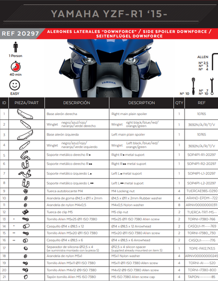 • Puig Winglets Spoiler Downforce Yamaha YZF-R1/M RN65 (20-25) 20297