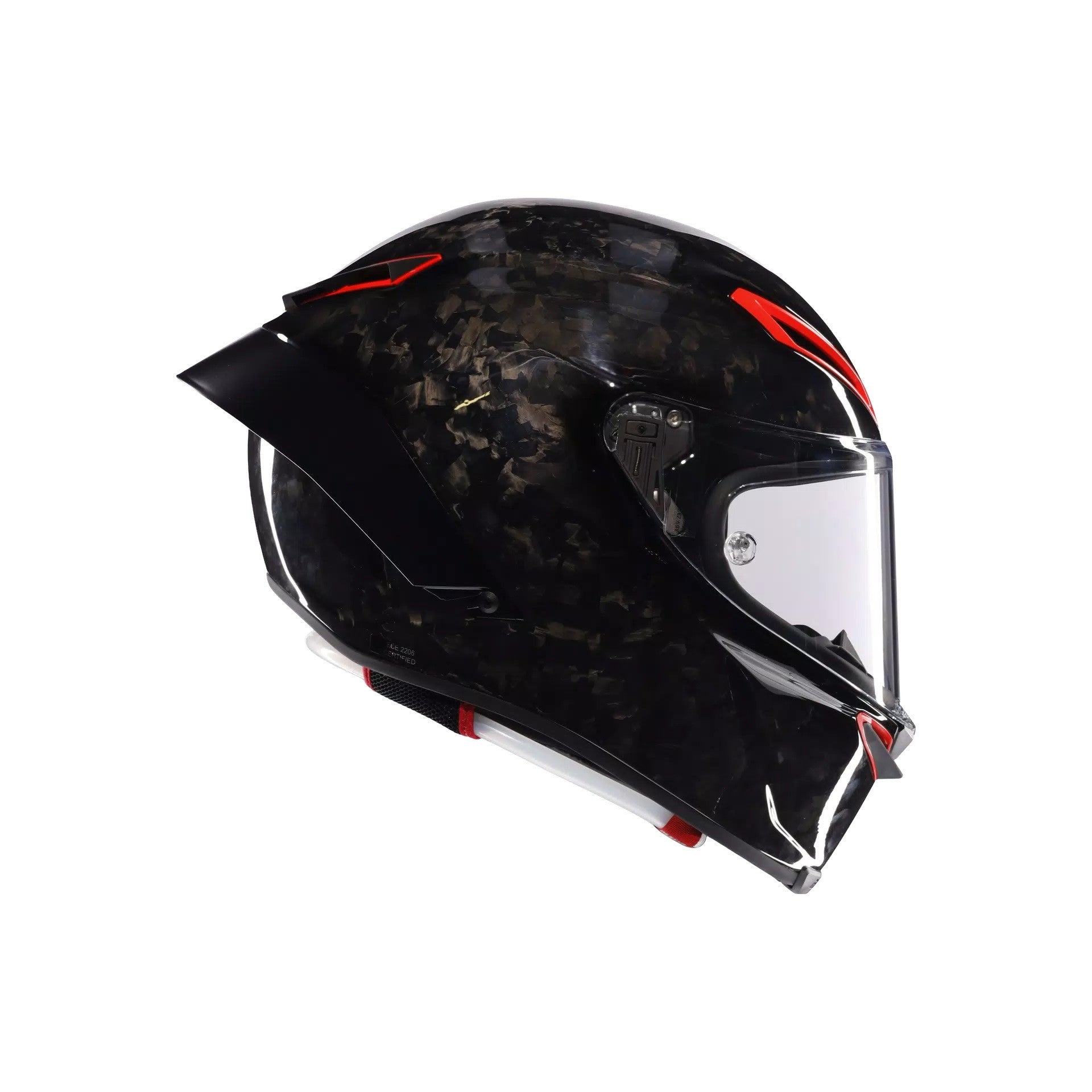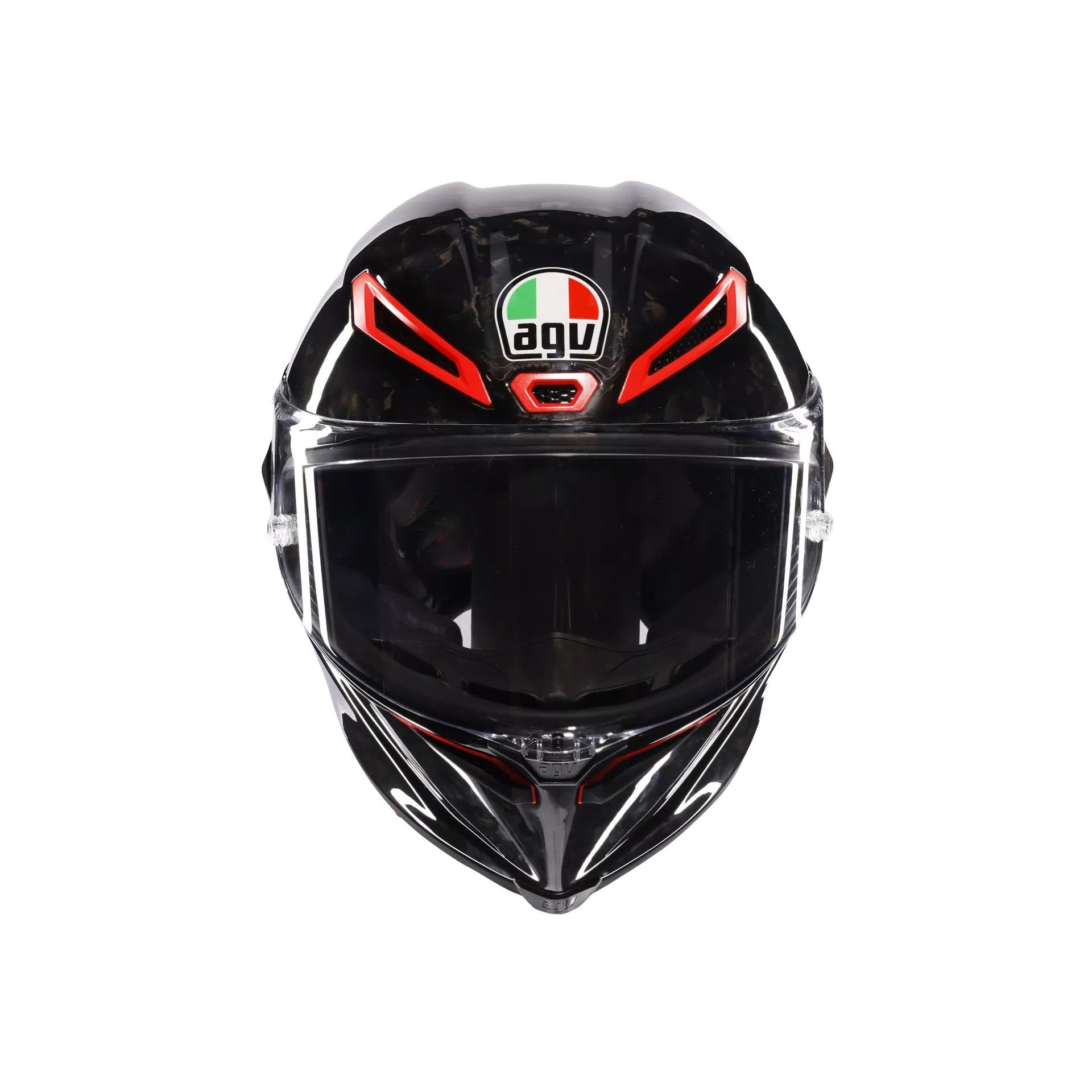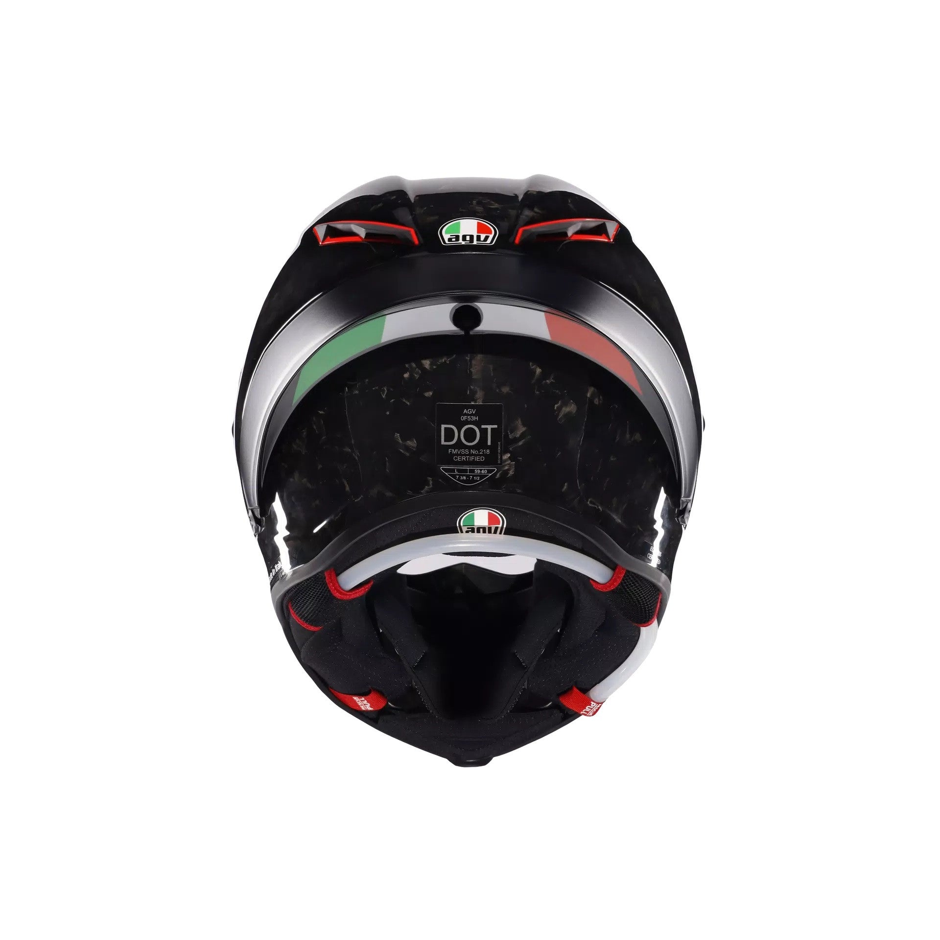 Der Pista GP RR ist die perfekte Replik des AGV-Helms, den die Champions der Motorrad-WM beim Rennen verwenden. Deshalb hat er die neue FIM-Homologation erhalten, die den höchstmöglichen Schutzgrad zertifiziert. Er schützt auch vor den gefährlichen Rotationsbeschleunigungen des Kopfes. Dank des einzigartigen Extreme Safety Design-Protokolls von AGV übertrifft der Pista GP RR bereits die Anforderungen der strengen Zulassungsnorm ECE 22.06. Jedes Detail ist auf absolute Leistung ausgelegt. Die Schale aus 100 % Extreme Carbon-Carbonfaser garantiert eine extreme Leichtigkeit, damit man beim Tragen niemals ein Schweregefühl spürt.