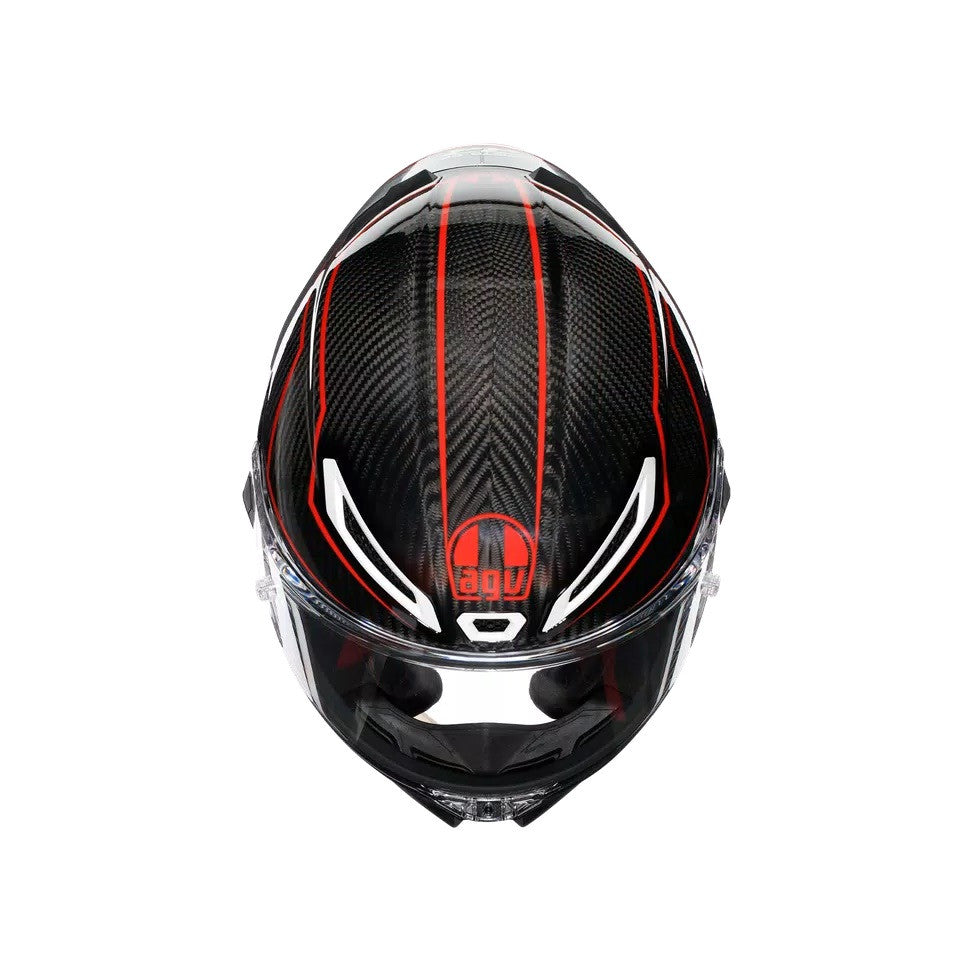 Der Pista GP RR ist die perfekte Replik des AGV-Helms, den die Champions der Motorrad-WM beim Rennen verwenden. Deshalb hat er die neue FIM-Homologation erhalten, die den höchstmöglichen Schutzgrad zertifiziert. Er schützt auch vor den gefährlichen Rotationsbeschleunigungen des Kopfes. Dank des einzigartigen Extreme Safety Design-Protokolls von AGV übertrifft der Pista GP RR bereits die Anforderungen der strengen Zulassungsnorm ECE 22.06. Jedes Detail ist auf absolute Leistung ausgelegt. Die Schale aus 100 % Extreme Carbon-Carbonfaser garantiert eine extreme Leichtigkeit, damit man beim Tragen niemals ein Schweregefühl spürt.