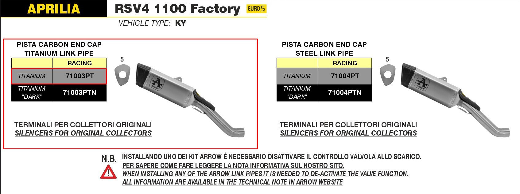 Arrow Slip-On Kit Pista Titanium für Aprilia RSV4 1100 Factory (21-25) – Artikelnummer 71003PT