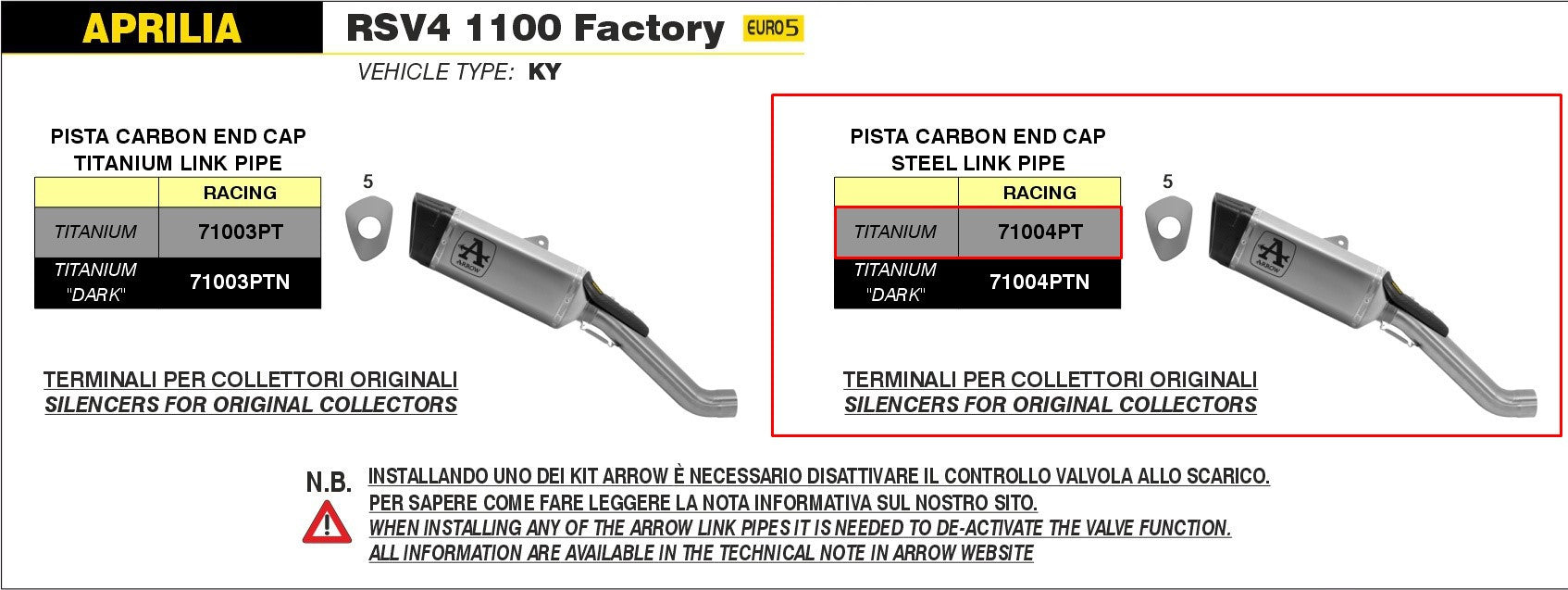 Arrow Slip-On Kit Pista Edelstahl für Aprilia RSV4 1100 Factory (21-25) – Artikelnummer 71004PT