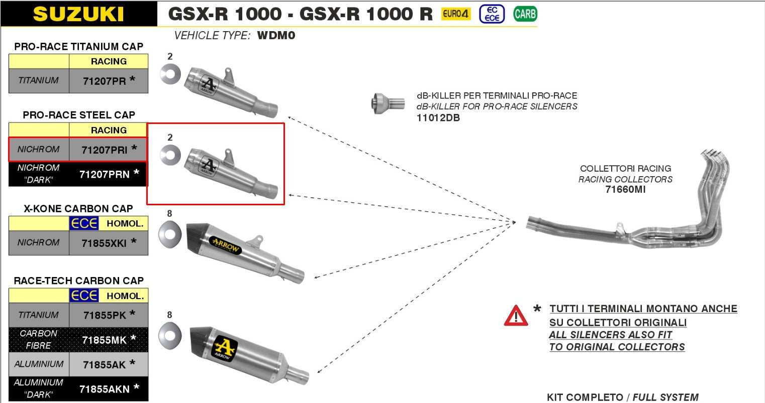 Arrow Slip-On Pro-Race Edelstahl für Suzuki GSX-R 1000 (17-23) – 71207PRI