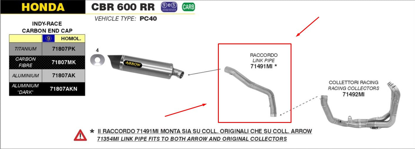 Das Arrow Racing Zwischenrohr 71491MI wurde speziell für die Honda CBR 600 RR (Baujahre 2013-2016) entwickelt und ermöglicht die Weiterverwendung des originalen Krümmers oder den Anschluss an den Arrow Krümmer (71492MI). Für eine optimale Leistung und Langlebigkeit wird eine Neuprogrammierung des Steuergeräts empfohlen.