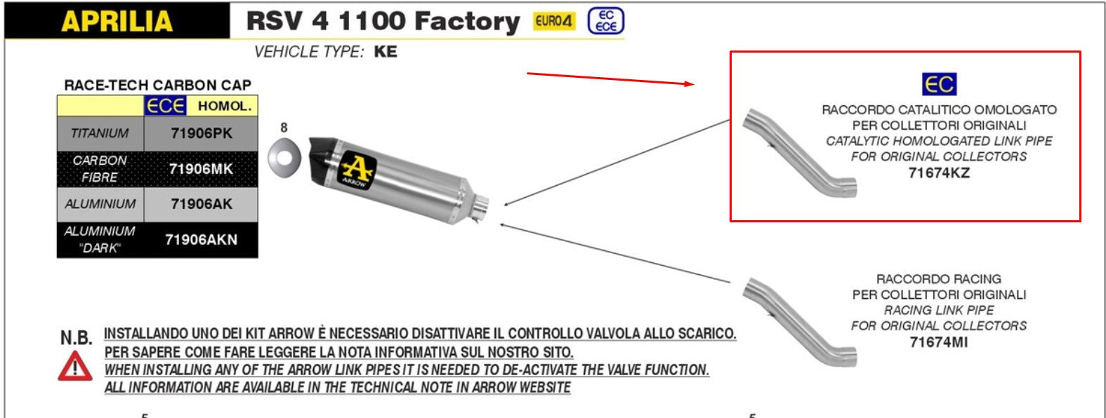 Arrow Zwischenrohr mit Katalysator Edelstahl für Aprilia RSV4 1100 Factory (19-20) – Artikelnummer 71674KZ