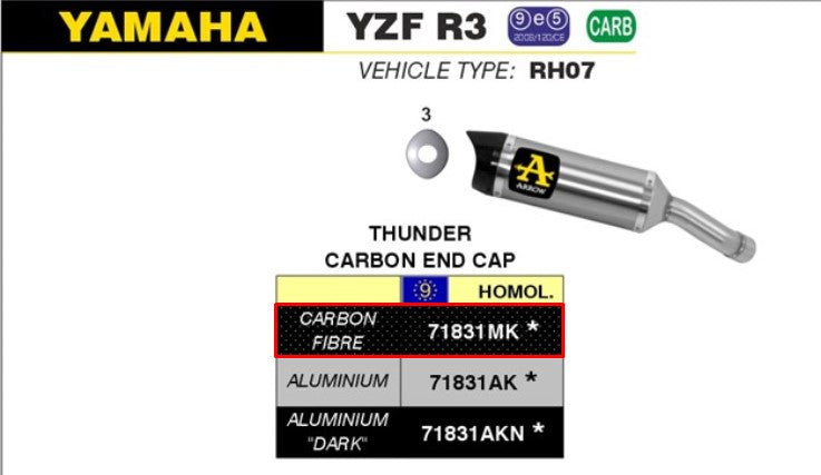 Arrow Slip-On Thunder Carbon für Yamaha YZF-R3 (15-18) – 71831MK