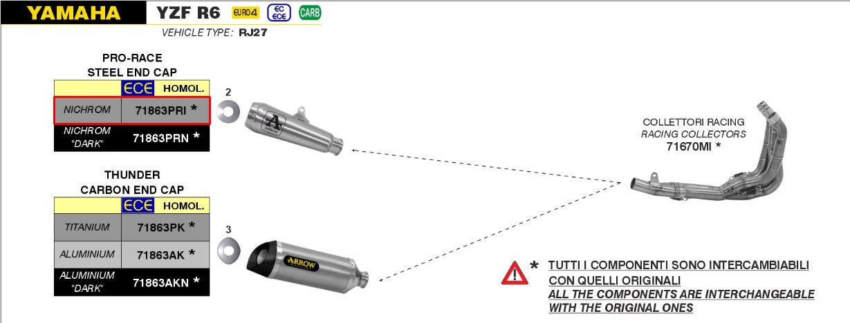 Arrow Slip-On Pro-Race Edelstahl für Yamaha YZF-R6 RJ27 (17-25) – 71863PRI