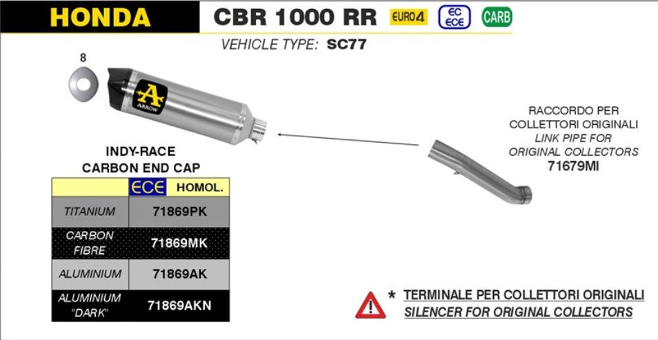 Arrow Slip-On Indy-Race Aluminium Honda CBR 1000 RR SC77 (17-19) 71869AK