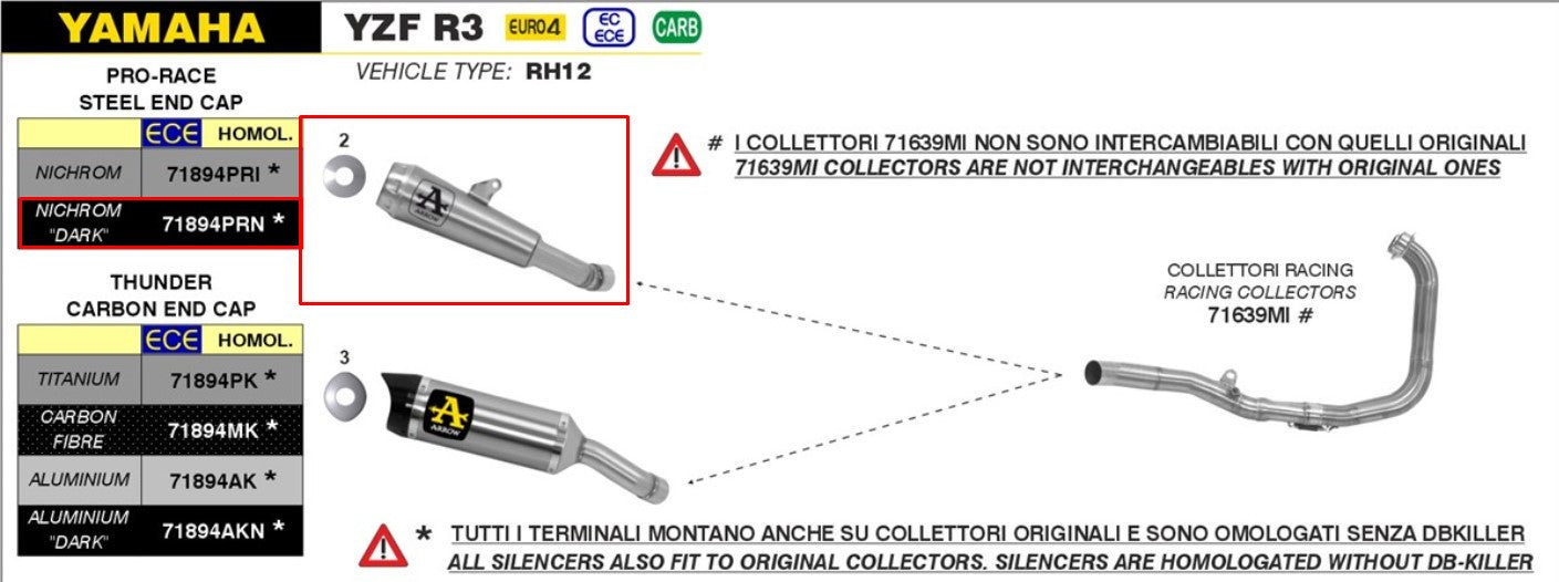 Wichtig: Das erste Beispielbild wurde gephotoshopt, da Arrow noch kein Produktbild für die Yamaha YZF-R3 zur Verfügung stellt. Das tatsächliche Produkt entspricht jedoch den hier beschriebenen Spezifikationen.