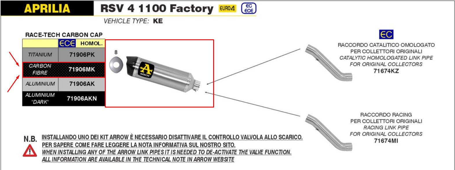 - Der Slip-On ist nur mit einem passenden Arrow Zwischenrohr verwendbar.