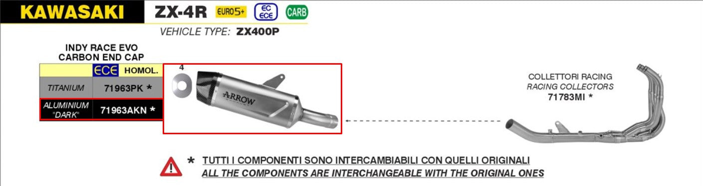 Arrow Slip-On Indy Race Aluminium Dark für Kawasaki ZX-4RR (23-25)