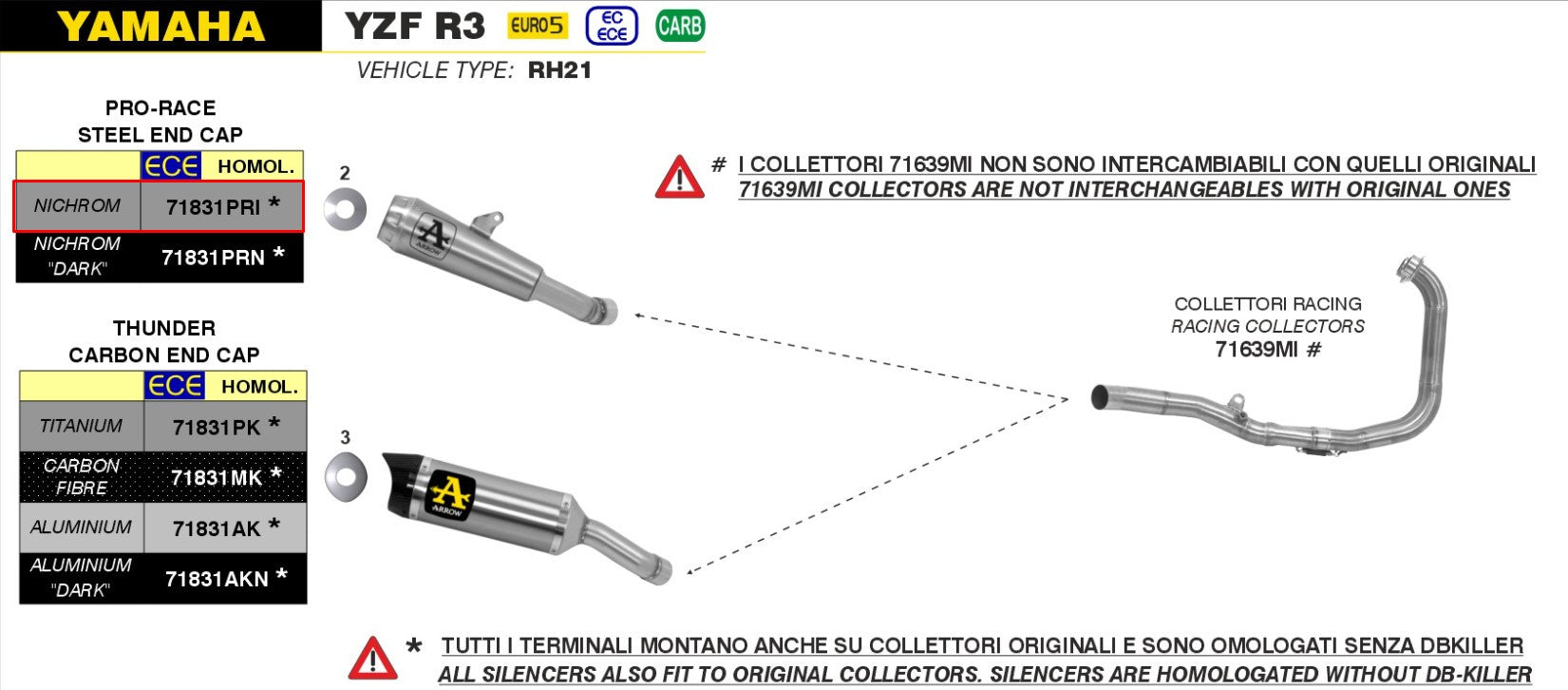 Arrow Slip-On Pro-Race Edelstahl für Yamaha YZF-R3 (21-25) – 71831PRI