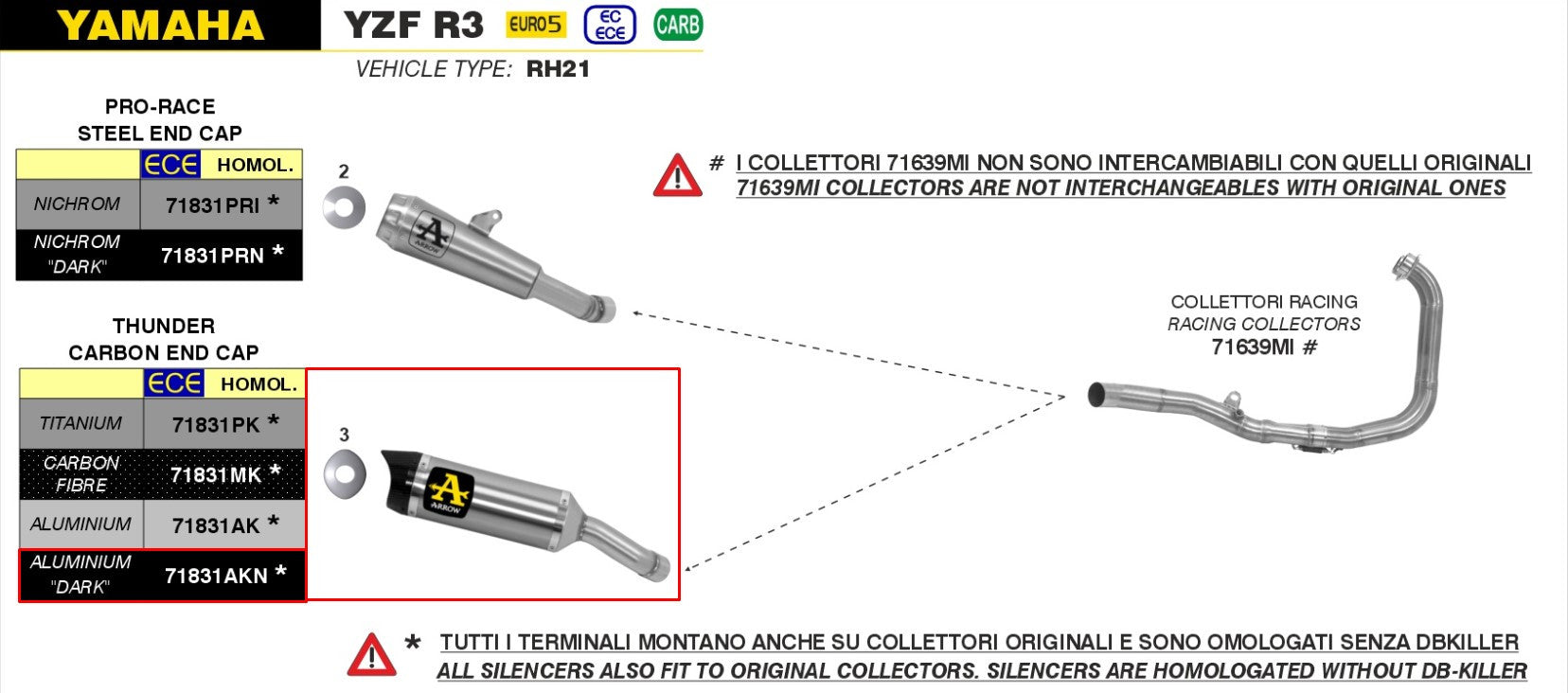 Arrow Slip-On Thunder Aluminium Dark Yamaha YZF-R3 (21-25) 71831AKN