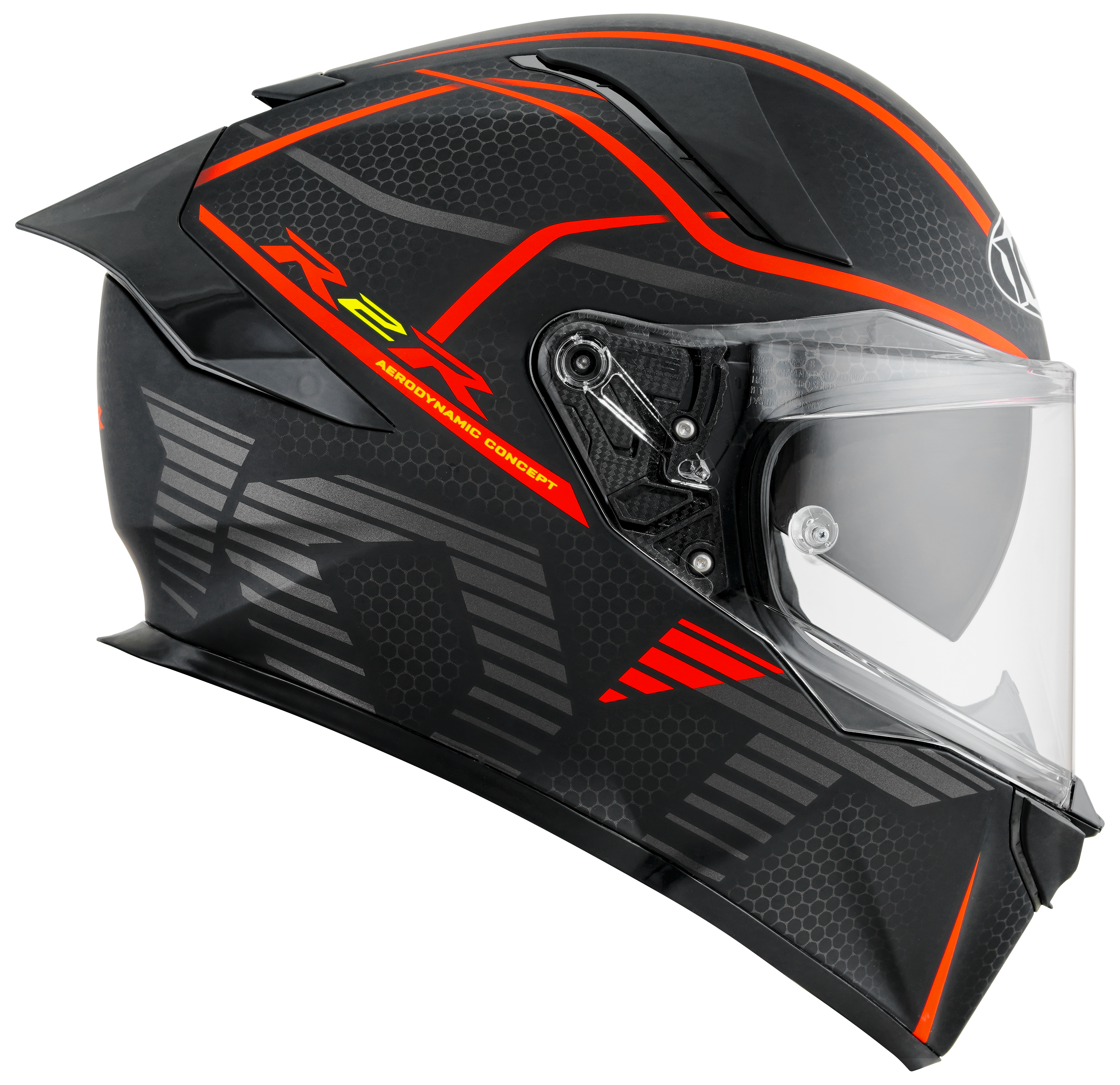 Der KYT R2R Concept Matt Schwarz/Rot vereint modernes, reduziertes Design mit markanten roten Akzenten. Das matte Schwarz wirkt edel und kraftvoll, während die roten Linien dem Helm einen dynamischen Racing-Look verleihen.