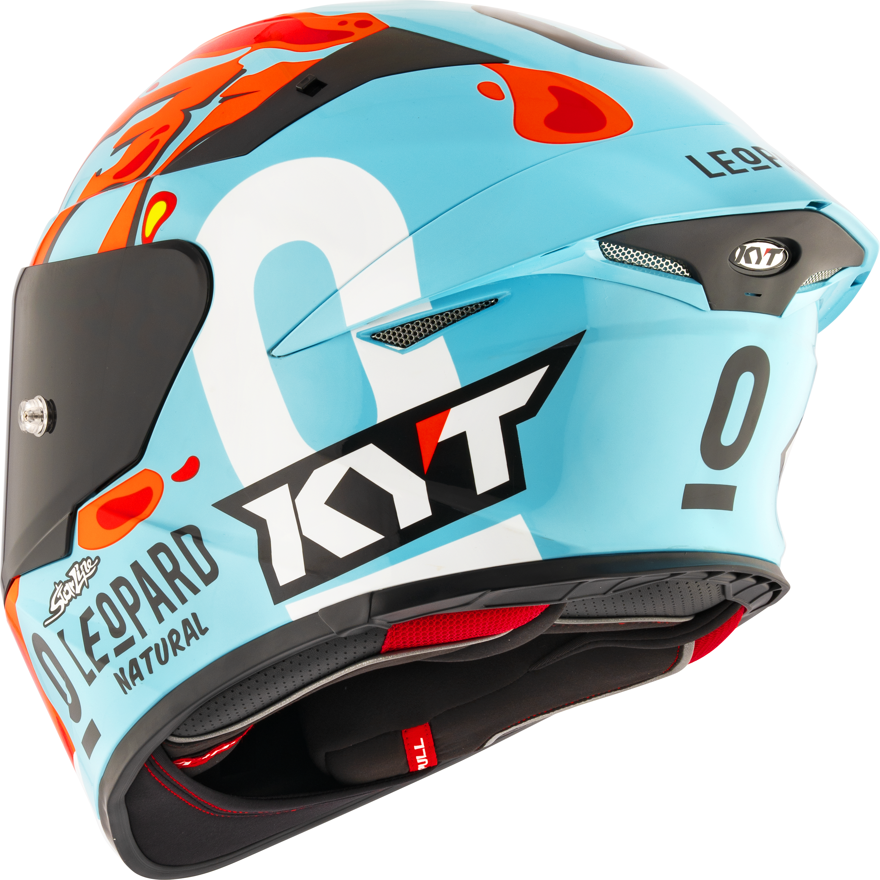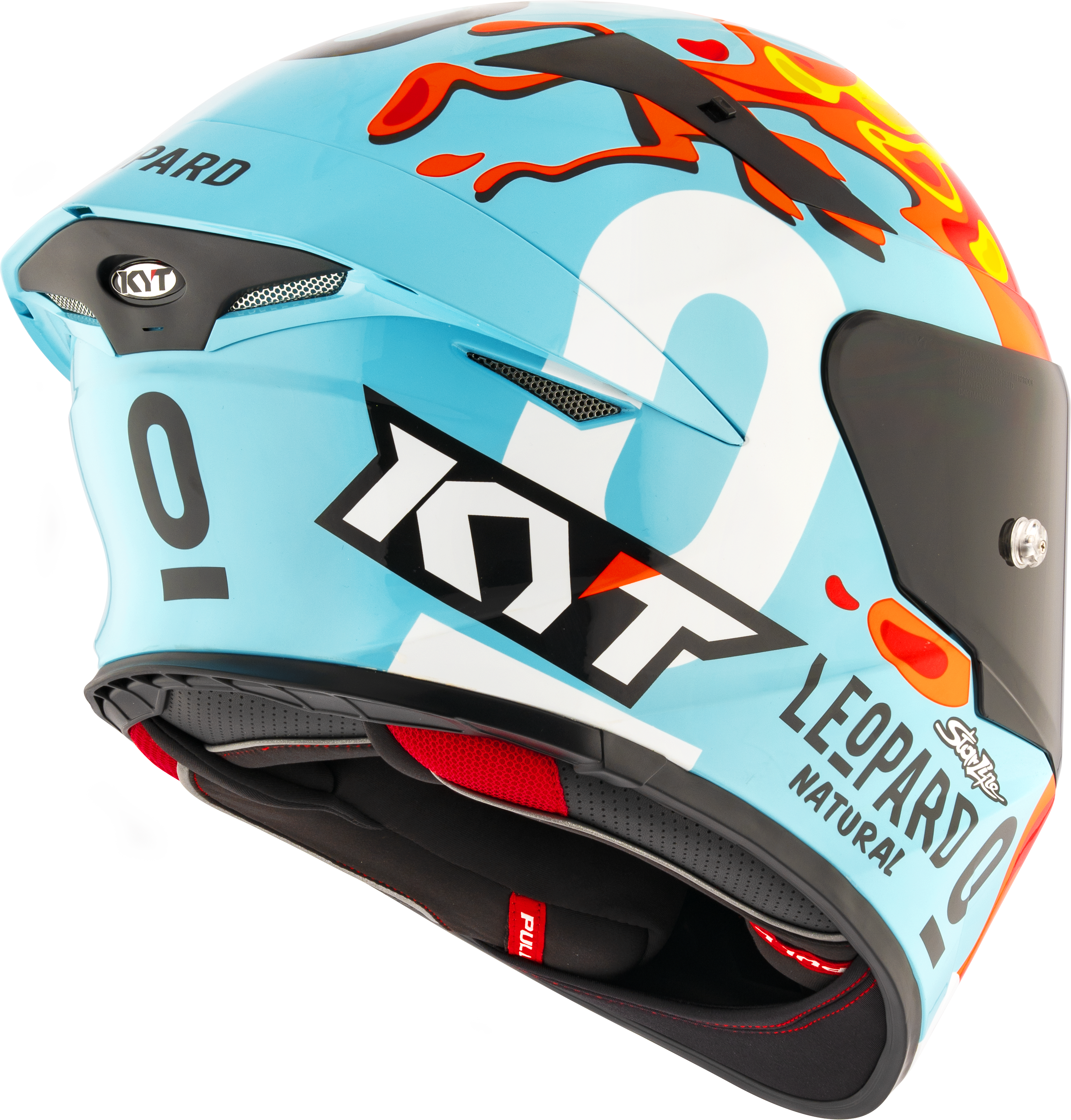 De KYT TT-Revo Leopard Replica Aragon is een technisch moderne, sportieve integraalhelm met authentieke MotoGP-grafiek. Met een sterk ventilatiesysteem, vizier-lock, Pinlock-voorbereiding, comfortabel binnenvoering en ECE 22.06 biedt hij veiligheid en stijl in perfecte balans.