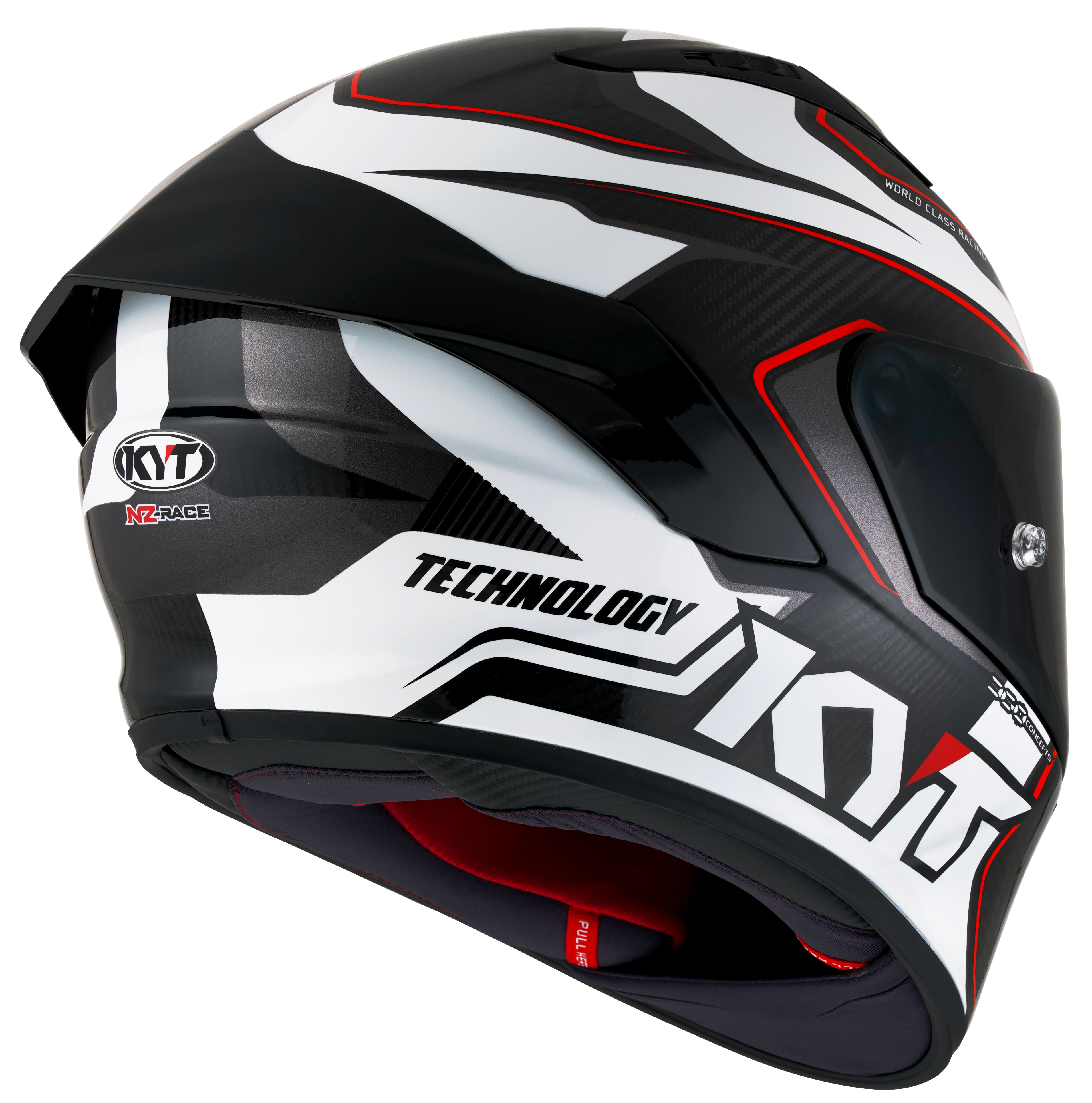 Durch seine aerodynamische Form und Windkanal-Tests ist der KYT NZ-Race Helm besonders für den Einsatz auf der Rennstrecke geeignet. Gleichzeitig sorgt die Tri-Fiber-Verbundschale für optimale Stoßdämpfung und Schutz.