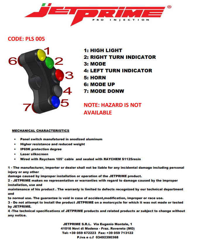 Warum JetPrime? JetPrime ist bekannt für seine hochwertigen und präzise gefertigten Produkte im Bereich Rennsport-Zubehör. Mit diesem Lenkerschalter erhältst du eine langlebige und funktionelle Lösung, die das Fahrverhalten und die Steuerung deiner Ducati Panigale 959 erheblich verbessert.