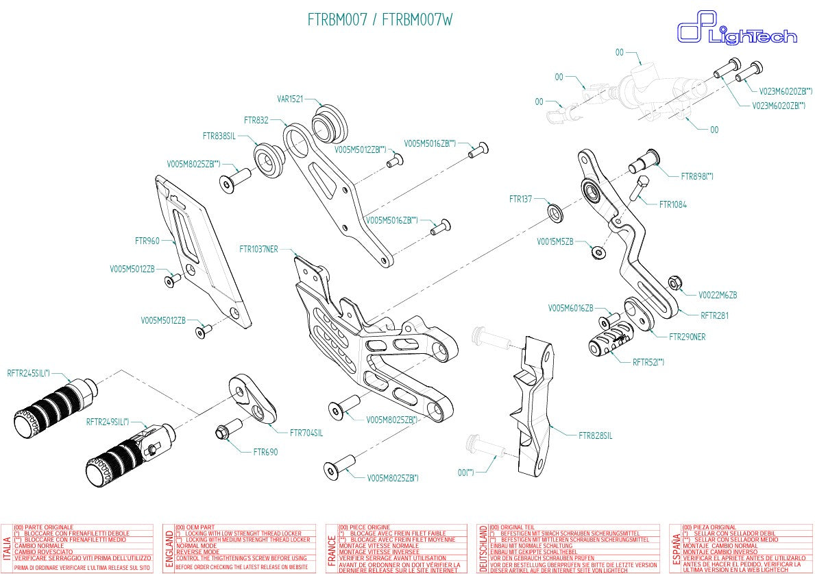 Die LighTech Fußrastenanlage FTRBM007/W wurde speziell für die BMW S1000RR K67 (Modelljahre 2019–2025) entwickelt. Sie überzeugt durch höchste Fertigungsqualität, vielfache Einstellbarkeit und eine kompromisslose Ausrichtung auf Performance im Straßen- und Rennbetrieb.