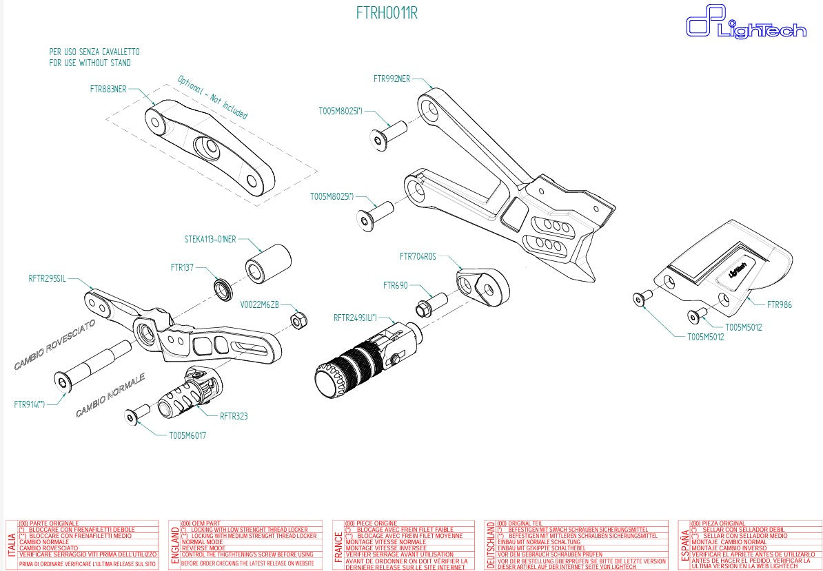 Die LighTech R-Fußrastenanlage FTRHO011R für die Honda CBR 1000 RR-R SC82 (Modelljahre 2020–2025) bietet höchste Qualität, Ergonomie und Flexibilität für den Einsatz auf der Straße und der Rennstrecke.