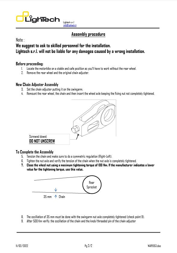 LighTech Kettenspanner für Yamaha YZF-R6 RJ11 / RJ15 (2006–2016) – mehr Kontrolle, weniger Spiel, perfekte Spannung.
