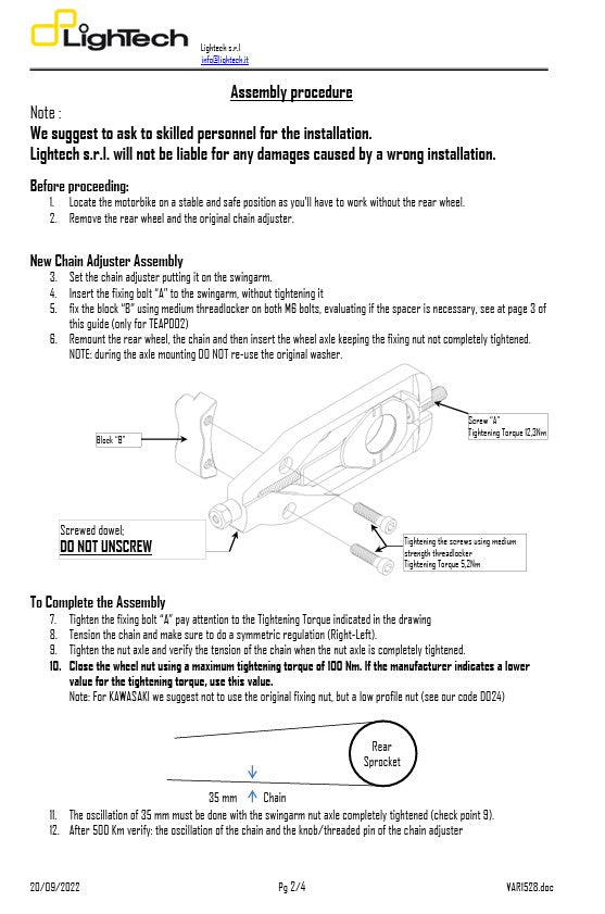 LighTech Kettenspanner für Yamaha YZF-R1 / M RN65 (2020–2025) – Rennsport-Technologie für deine aktuelle R1.