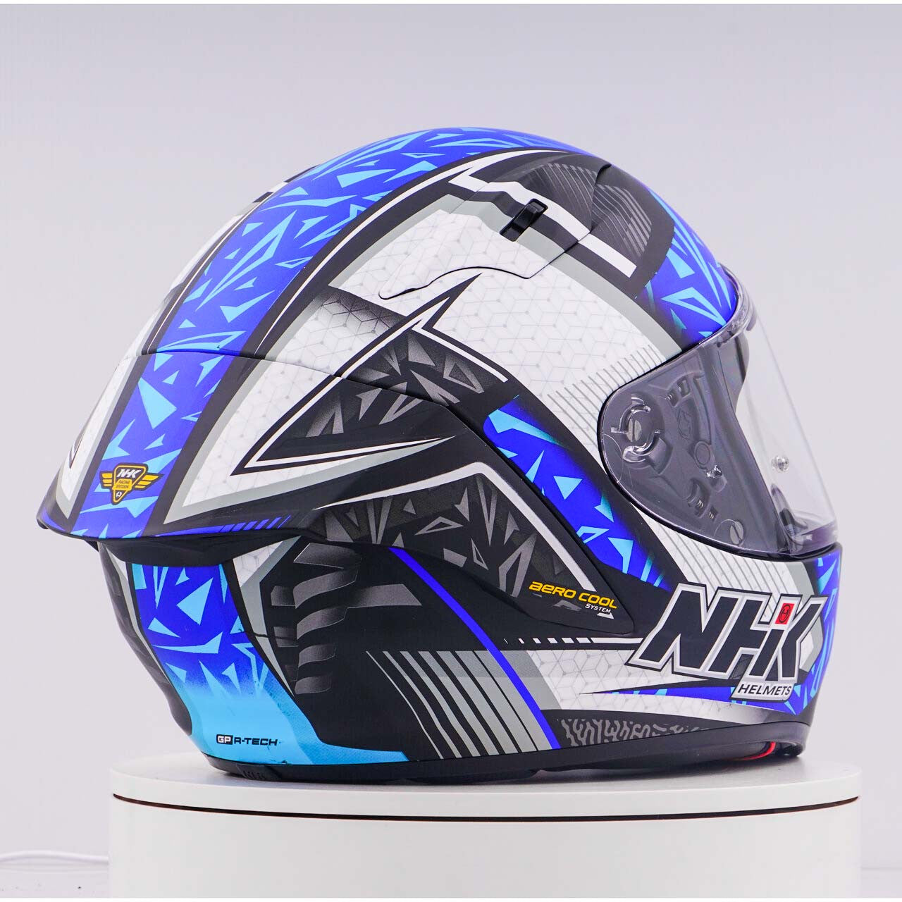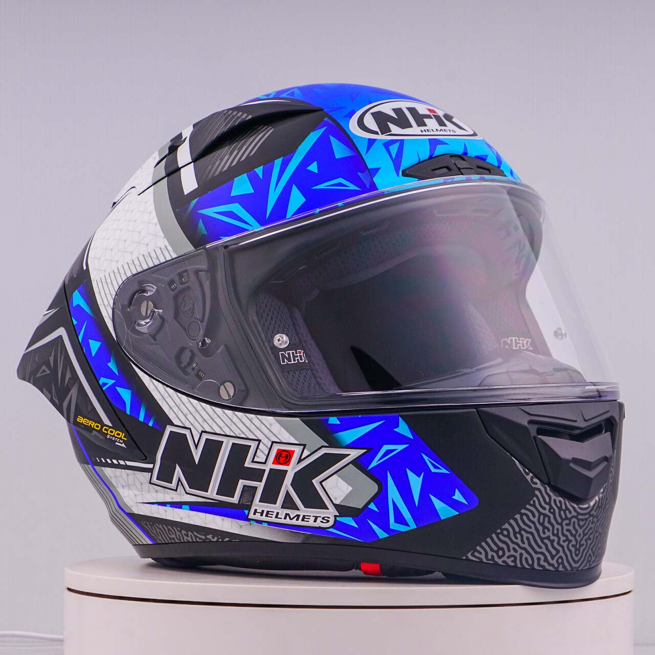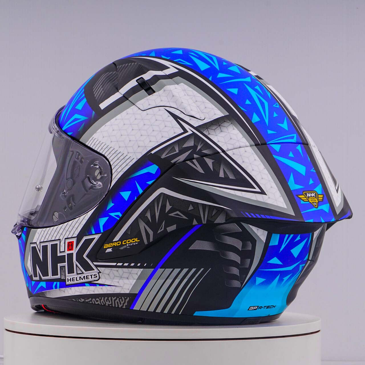 Erleben Sie den ultimativen Motorradhelm mit dem NHK GP-R Tech Race, der FIM-zugelassen ist und eine (AFRC) Advanced Fiberglass Reinforced Composite-Verbundschale in fünf Größen bietet, die perfekte Passform und Schutz garantiert. Der AFRC ist ein Verbundwerkstoff, der aus einer Matrix und Verstärkungsfasern besteht. Die Matrix ist in der Regel ein Polymer (z. B. Epoxidharz), während die Verstärkungsfasern aus Glasfasern bestehen. Mit neun Innenschalengrößen und zwölf Helmgrößen finden Sie immer die ideale Passform. Unser 4D-Air Lüftungssystem sorgt für eine optimale Belüftung und ein angenehmes Tragegefühl, während das Premium und komfortable Innenfutter höchsten Komfort bietet.Der Helm wurde aerodynamisch in den Klassen der MotoGP getestet und verfügt über ein flaches Visier mit "Wide Angle View" für ein erweitertes Sichtfeld. Das Pin-Lock & Tear-off-ready Visier gewährleistet klare Sicht unter allen Bedingungen. Dank des 100% vollmechanischen Visiersystems ist der Wechsel des Visiers einfach und schnell.Das herausnehmbare und waschbare Innenfutter sorgt für einfache Pflege und Hygiene. Der Helm ist zudem vorbereitet für einen "Camel-Bag" und kann problemlos mit Brille getragen werden. Das Doppel-D-Ring-Rückhaltesystem und die Wange zur Notabnahme bieten zusätzliche Sicherheit und Stabilität. Der Helm wurde im Windkanal getestet, um beste Leistung bei hoher Geschwindigkeit zu gewährleisten.