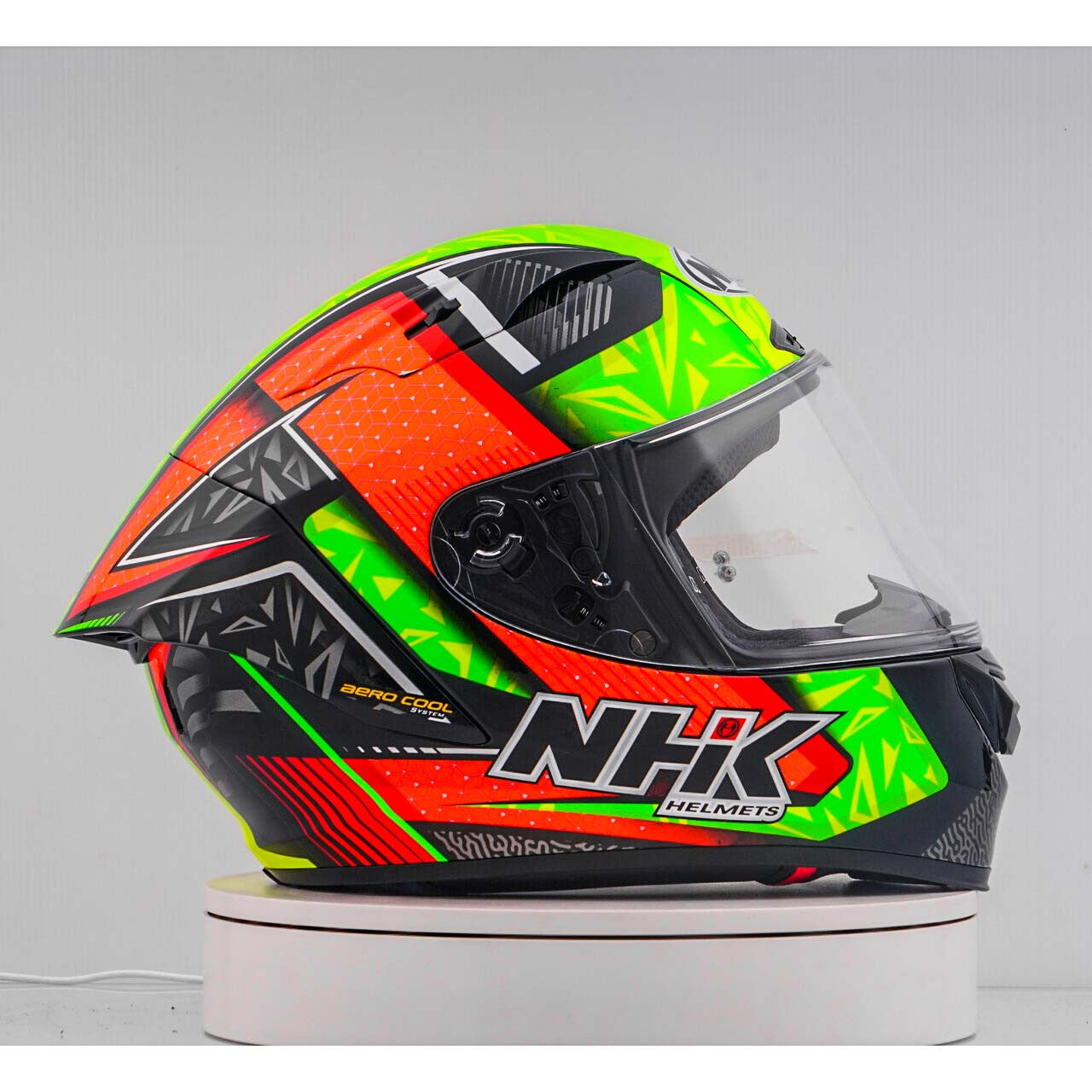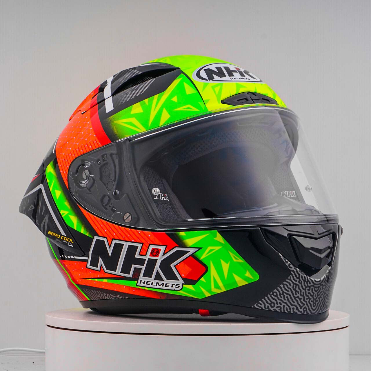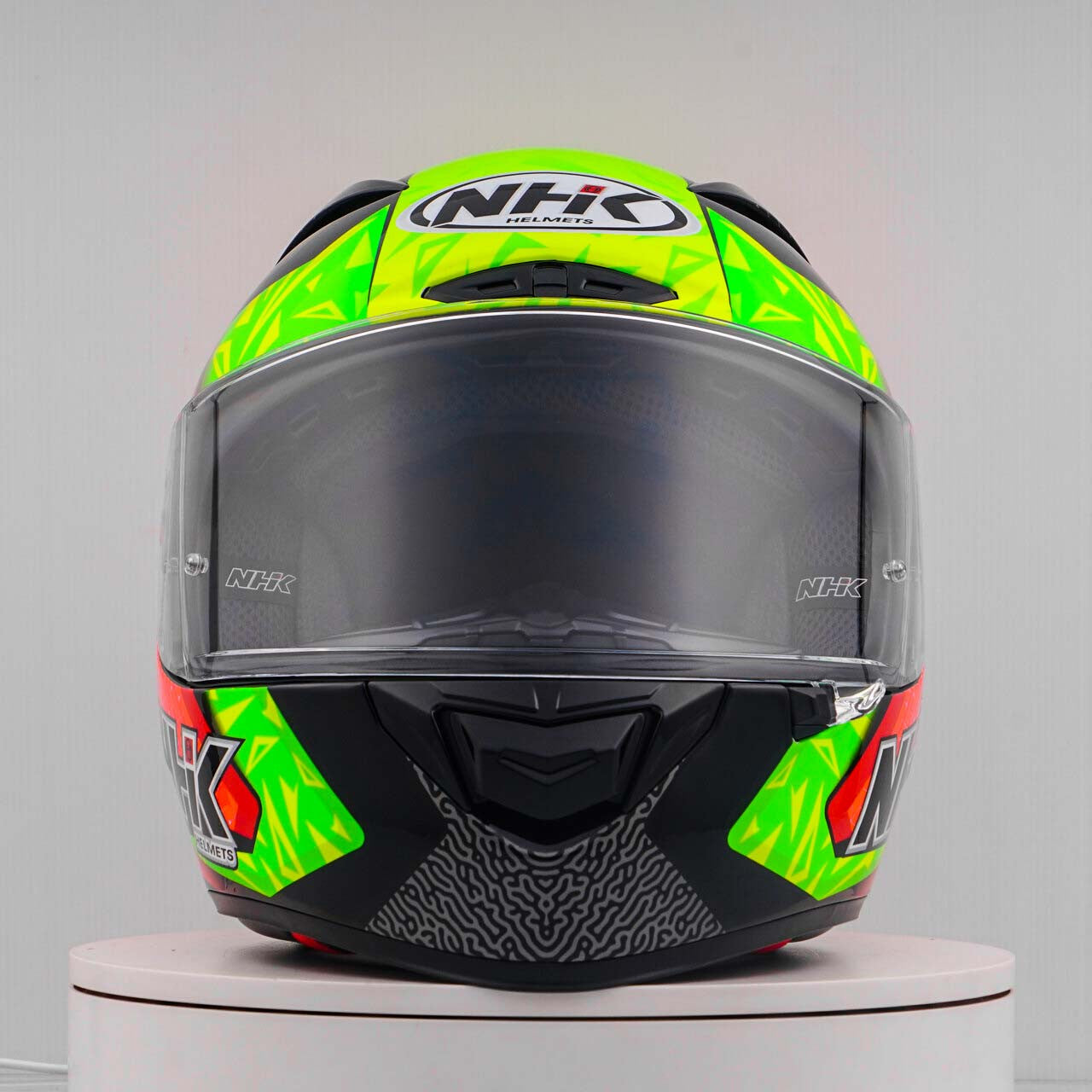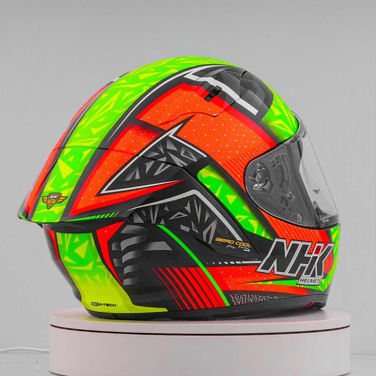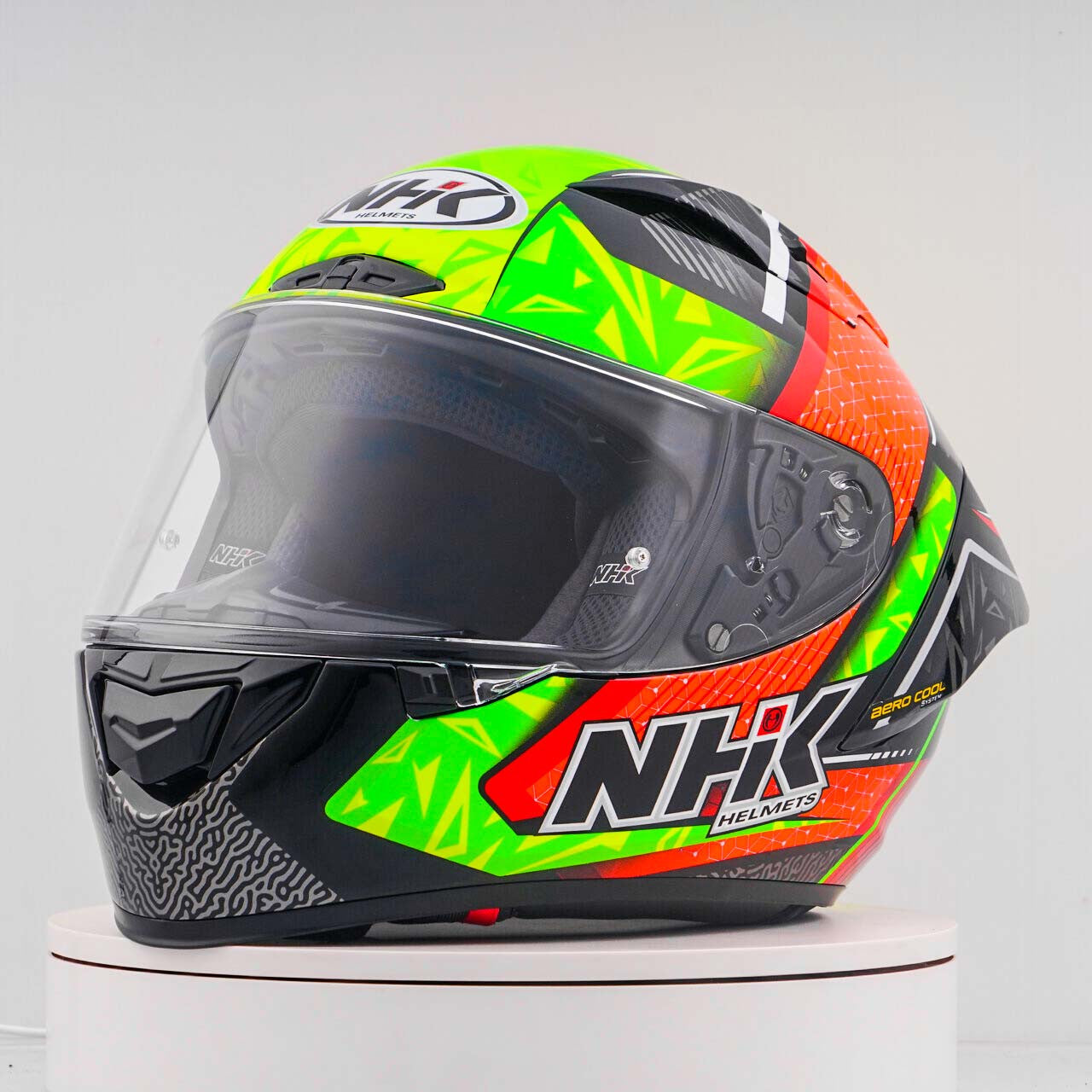 Erleben Sie den ultimativen Motorradhelm mit dem NHK GP-R Tech Race, der FIM-zugelassen ist und eine (AFRC) Advanced Fiberglass Reinforced Composite-Verbundschale in fünf Größen bietet, die perfekte Passform und Schutz garantiert. Der AFRC ist ein Verbundwerkstoff, der aus einer Matrix und Verstärkungsfasern besteht. Die Matrix ist in der Regel ein Polymer (z. B. Epoxidharz), während die Verstärkungsfasern aus Glasfasern bestehen. Mit neun Innenschalengrößen und zwölf Helmgrößen finden Sie immer die ideale Passform. Unser 4D-Air Lüftungssystem sorgt für eine optimale Belüftung und ein angenehmes Tragegefühl, während das Premium und komfortable Innenfutter höchsten Komfort bietet.Der Helm wurde aerodynamisch in den Klassen der MotoGP getestet und verfügt über ein flaches Visier mit "Wide Angle View" für ein erweitertes Sichtfeld. Das Pin-Lock & Tear-off-ready Visier gewährleistet klare Sicht unter allen Bedingungen. Dank des 100% vollmechanischen Visiersystems ist der Wechsel des Visiers einfach und schnell.Das herausnehmbare und waschbare Innenfutter sorgt für einfache Pflege und Hygiene. Der Helm ist zudem vorbereitet für einen "Camel-Bag" und kann problemlos mit Brille getragen werden. Das Doppel-D-Ring-Rückhaltesystem und die Wange zur Notabnahme bieten zusätzliche Sicherheit und Stabilität. Der Helm wurde im Windkanal getestet, um beste Leistung bei hoher Geschwindigkeit zu gewährleisten.