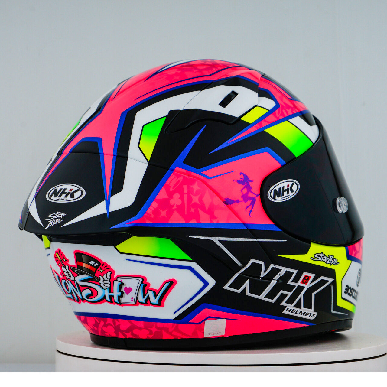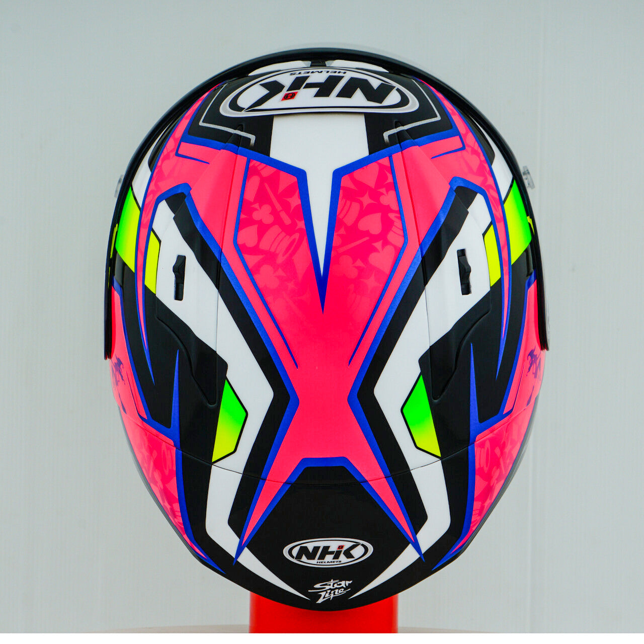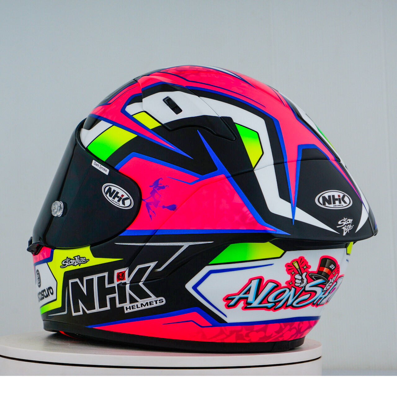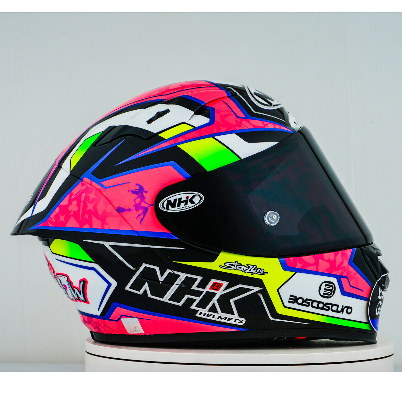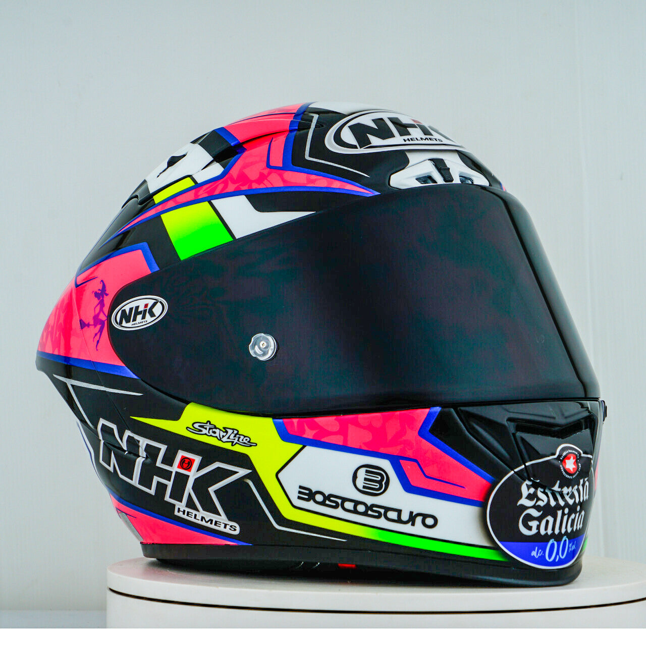 Erleben Sie den ultimativen Motorradhelm mit dem NHK GP-R Tech Race, der FIM-zugelassen ist und eine (AFRC) Advanced Fiberglass Reinforced Composite-Verbundschale in fünf Größen bietet, die perfekte Passform und Schutz garantiert. Der AFRC ist ein Verbundwerkstoff, der aus einer Matrix und Verstärkungsfasern besteht. Die Matrix ist in der Regel ein Polymer (z. B. Epoxidharz), während die Verstärkungsfasern aus Glasfasern bestehen. Mit neun Innenschalengrößen und zwölf Helmgrößen finden Sie immer die ideale Passform. Unser 4D-Air Lüftungssystem sorgt für eine optimale Belüftung und ein angenehmes Tragegefühl, während das Premium und komfortable Innenfutter höchsten Komfort bietet. Der Helm wurde aerodynamisch in den Klassen der MotoGP getestet und verfügt über ein flaches Visier mit "Wide Angle View" für ein erweitertes Sichtfeld. Das Pin-Lock & Tear-off-ready Visier gewährleistet klare Sicht unter allen Bedingungen. Dank des 100% vollmechanischen Visiersystems ist der Wechsel des Visiers einfach und schnell. Das herausnehmbare und waschbare Innenfutter sorgt für einfache Pflege und Hygiene. Der Helm ist zudem vorbereitet für einen "Camel-Bag" und kann problemlos mit Brille getragen werden. Das Doppel-D-Ring-Rückhaltesystem und die Wange zur Notabnahme bieten zusätzliche Sicherheit und Stabilität. Der Helm wurde im Windkanal getestet, um beste Leistung bei hoher Geschwindigkeit zu gewährleisten.