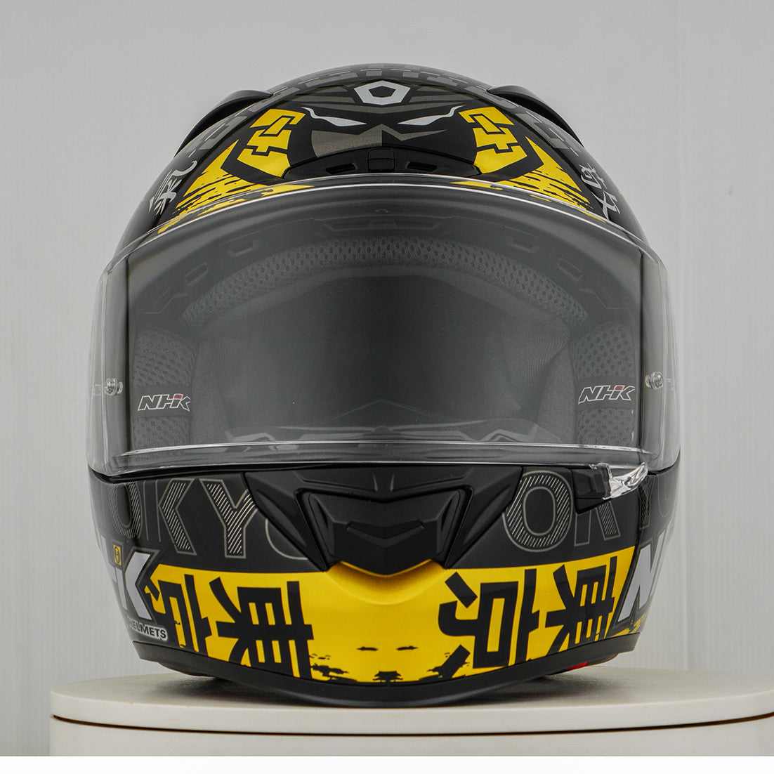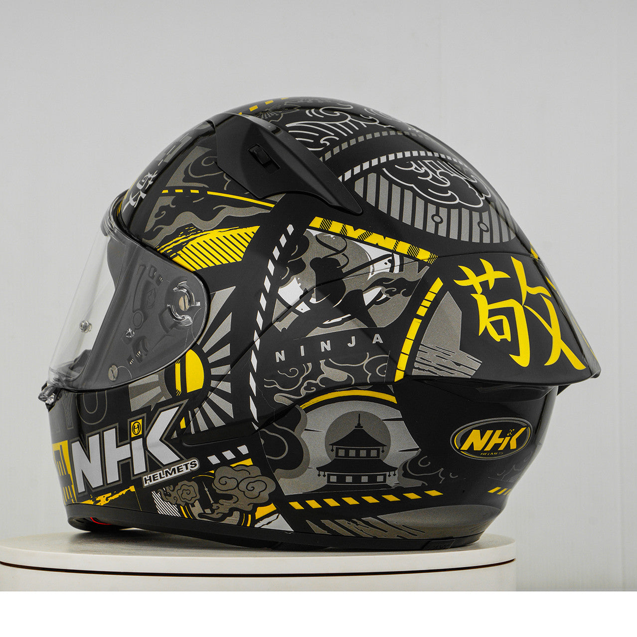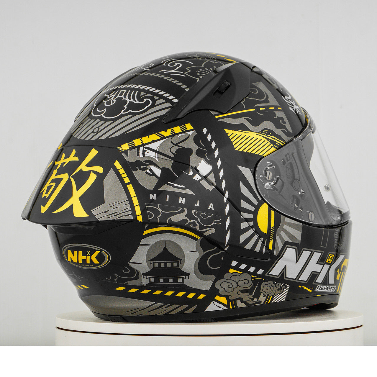 Erleben Sie den ultimativen Motorradhelm mit dem NHK GP-R Tech Race, der FIM-zugelassen ist und eine (AFRC) Advanced Fiberglass Reinforced Composite-Verbundschale in fünf Größen bietet, die perfekte Passform und Schutz garantiert. Der AFRC ist ein Verbundwerkstoff, der aus einer Matrix und Verstärkungsfasern besteht. Die Matrix ist in der Regel ein Polymer (z. B. Epoxidharz), während die Verstärkungsfasern aus Glasfasern bestehen. Mit neun Innenschalengrößen und zwölf Helmgrößen finden Sie immer die ideale Passform. Unser 4D-Air Lüftungssystem sorgt für eine optimale Belüftung und ein angenehmes Tragegefühl, während das Premium und komfortable Innenfutter höchsten Komfort bietet. Der Helm wurde aerodynamisch in den Klassen der MotoGP getestet und verfügt über ein flaches Visier mit "Wide Angle View" für ein erweitertes Sichtfeld. Das Pin-Lock & Tear-off-ready Visier gewährleistet klare Sicht unter allen Bedingungen. Dank des 100% vollmechanischen Visiersystems ist der Wechsel des Visiers einfach und schnell. Das herausnehmbare und waschbare Innenfutter sorgt für einfache Pflege und Hygiene. Der Helm ist zudem vorbereitet für einen "Camel-Bag" und kann problemlos mit Brille getragen werden. Das Doppel-D-Ring-Rückhaltesystem und die Wange zur Notabnahme bieten zusätzliche Sicherheit und Stabilität. Der Helm wurde im Windkanal getestet, um beste Leistung bei hoher Geschwindigkeit zu gewährleisten.