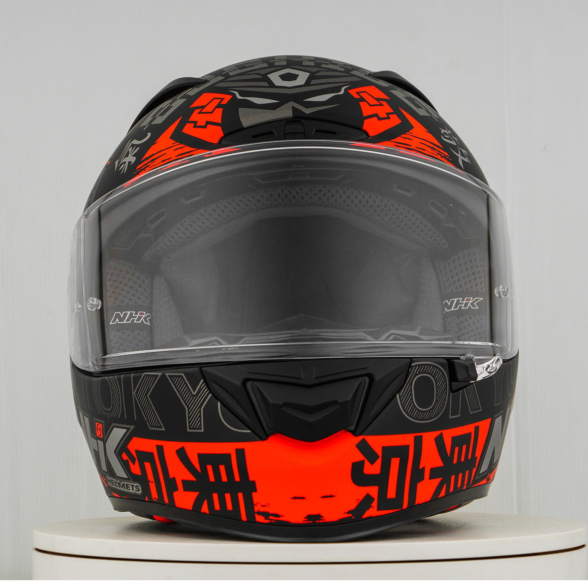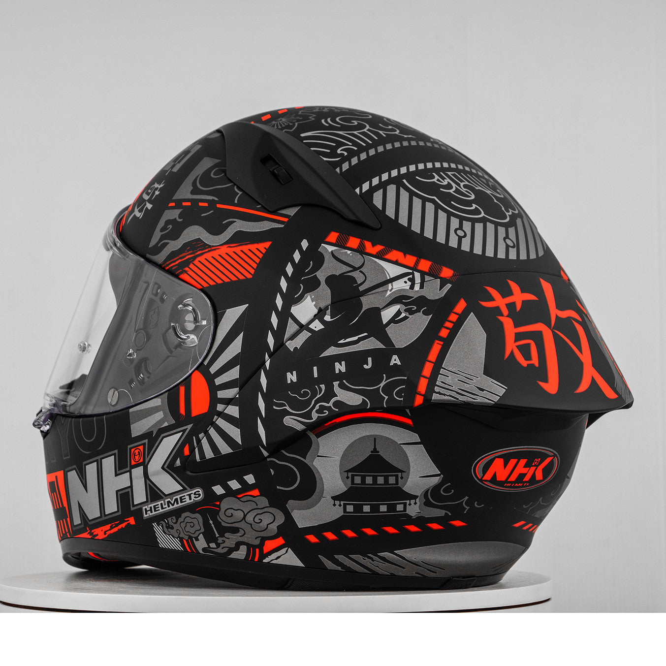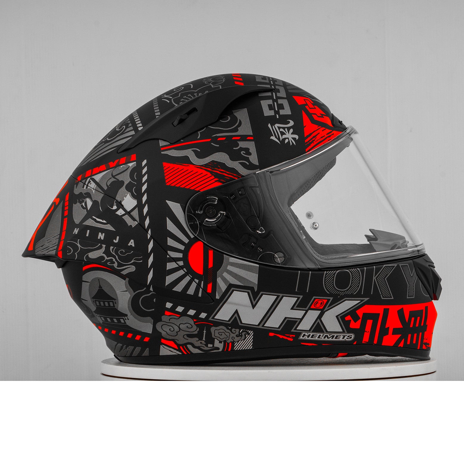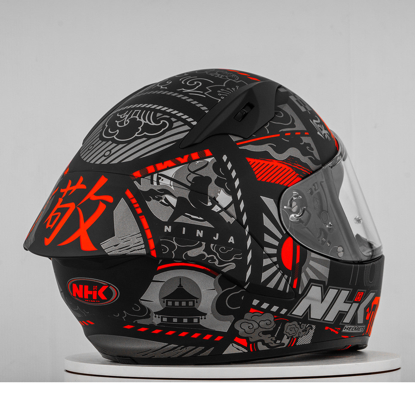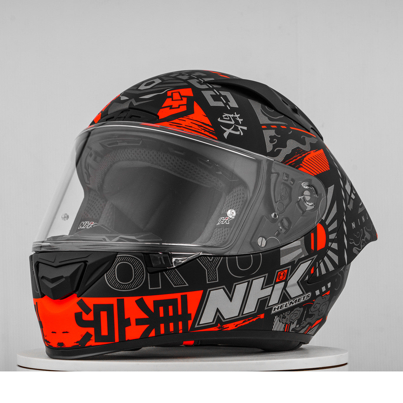 Erleben Sie den ultimativen Motorradhelm mit dem NHK GP-R Tech Race, der FIM-zugelassen ist und eine (AFRC) Advanced Fiberglass Reinforced Composite-Verbundschale in fünf Größen bietet, die perfekte Passform und Schutz garantiert. Der AFRC ist ein Verbundwerkstoff, der aus einer Matrix und Verstärkungsfasern besteht. Die Matrix ist in der Regel ein Polymer (z. B. Epoxidharz), während die Verstärkungsfasern aus Glasfasern bestehen. Mit neun Innenschalengrößen und zwölf Helmgrößen finden Sie immer die ideale Passform. Unser 4D-Air Lüftungssystem sorgt für eine optimale Belüftung und ein angenehmes Tragegefühl, während das Premium und komfortable Innenfutter höchsten Komfort bietet. Der Helm wurde aerodynamisch in den Klassen der MotoGP getestet und verfügt über ein flaches Visier mit "Wide Angle View" für ein erweitertes Sichtfeld. Das Pin-Lock & Tear-off-ready Visier gewährleistet klare Sicht unter allen Bedingungen. Dank des 100% vollmechanischen Visiersystems ist der Wechsel des Visiers einfach und schnell. Das herausnehmbare und waschbare Innenfutter sorgt für einfache Pflege und Hygiene. Der Helm ist zudem vorbereitet für einen "Camel-Bag" und kann problemlos mit Brille getragen werden. Das Doppel-D-Ring-Rückhaltesystem und die Wange zur Notabnahme bieten zusätzliche Sicherheit und Stabilität. Der Helm wurde im Windkanal getestet, um beste Leistung bei hoher Geschwindigkeit zu gewährleisten.