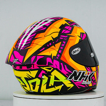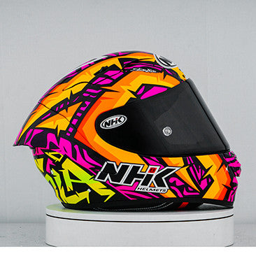 Erleben Sie den ultimativen Motorradhelm mit dem NHK GP-R Tech Race, der FIM-zugelassen ist und eine (AFRC) Advanced Fiberglass Reinforced Composite-Verbundschale in fünf Größen bietet, die perfekte Passform und Schutz garantiert. Der AFRC ist ein Verbundwerkstoff, der aus einer Matrix und Verstärkungsfasern besteht. Die Matrix ist in der Regel ein Polymer (z. B. Epoxidharz), während die Verstärkungsfasern aus Glasfasern bestehen. Mit neun Innenschalengrößen und zwölf Helmgrößen finden Sie immer die ideale Passform. Unser 4D-Air Lüftungssystem sorgt für eine optimale Belüftung und ein angenehmes Tragegefühl, während das Premium und komfortable Innenfutter höchsten Komfort bietet. Der Helm wurde aerodynamisch in den Klassen der MotoGP getestet und verfügt über ein flaches Visier mit "Wide Angle View" für ein erweitertes Sichtfeld. Das Pin-Lock & Tear-off-ready Visier gewährleistet klare Sicht unter allen Bedingungen. Dank des 100% vollmechanischen Visiersystems ist der Wechsel des Visiers einfach und schnell. Das herausnehmbare und waschbare Innenfutter sorgt für einfache Pflege und Hygiene. Der Helm ist zudem vorbereitet für einen "Camel-Bag" und kann problemlos mit Brille getragen werden. Das Doppel-D-Ring-Rückhaltesystem und die Wange zur Notabnahme bieten zusätzliche Sicherheit und Stabilität. Der Helm wurde im Windkanal getestet, um beste Leistung bei hoher Geschwindigkeit zu gewährleisten.