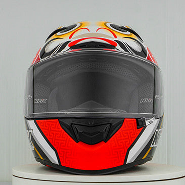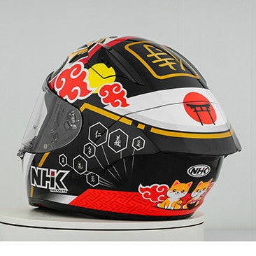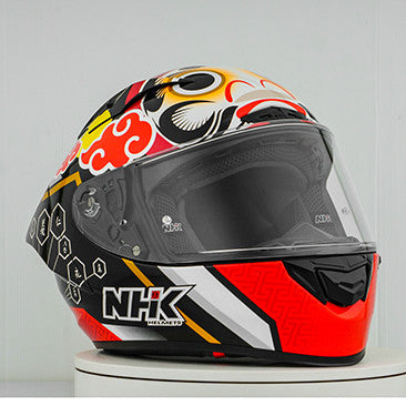 Erleben Sie den ultimativen Motorradhelm mit dem NHK GP-R Tech Race, der FIM-zugelassen ist und eine (AFRC) Advanced Fiberglass Reinforced Composite-Verbundschale in fünf Größen bietet, die perfekte Passform und Schutz garantiert. Der AFRC ist ein Verbundwerkstoff, der aus einer Matrix und Verstärkungsfasern besteht. Die Matrix ist in der Regel ein Polymer (z. B. Epoxidharz), während die Verstärkungsfasern aus Glasfasern bestehen. Mit neun Innenschalengrößen und zwölf Helmgrößen finden Sie immer die ideale Passform. Unser 4D-Air Lüftungssystem sorgt für eine optimale Belüftung und ein angenehmes Tragegefühl, während das Premium und komfortable Innenfutter höchsten Komfort bietet. Der Helm wurde aerodynamisch in den Klassen der MotoGP getestet und verfügt über ein flaches Visier mit "Wide Angle View" für ein erweitertes Sichtfeld. Das Pin-Lock & Tear-off-ready Visier gewährleistet klare Sicht unter allen Bedingungen. Dank des 100% vollmechanischen Visiersystems ist der Wechsel des Visiers einfach und schnell. Das herausnehmbare und waschbare Innenfutter sorgt für einfache Pflege und Hygiene. Der Helm ist zudem vorbereitet für einen "Camel-Bag" und kann problemlos mit Brille getragen werden. Das Doppel-D-Ring-Rückhaltesystem und die Wange zur Notabnahme bieten zusätzliche Sicherheit und Stabilität. Der Helm wurde im Windkanal getestet, um beste Leistung bei hoher Geschwindigkeit zu gewährleisten.