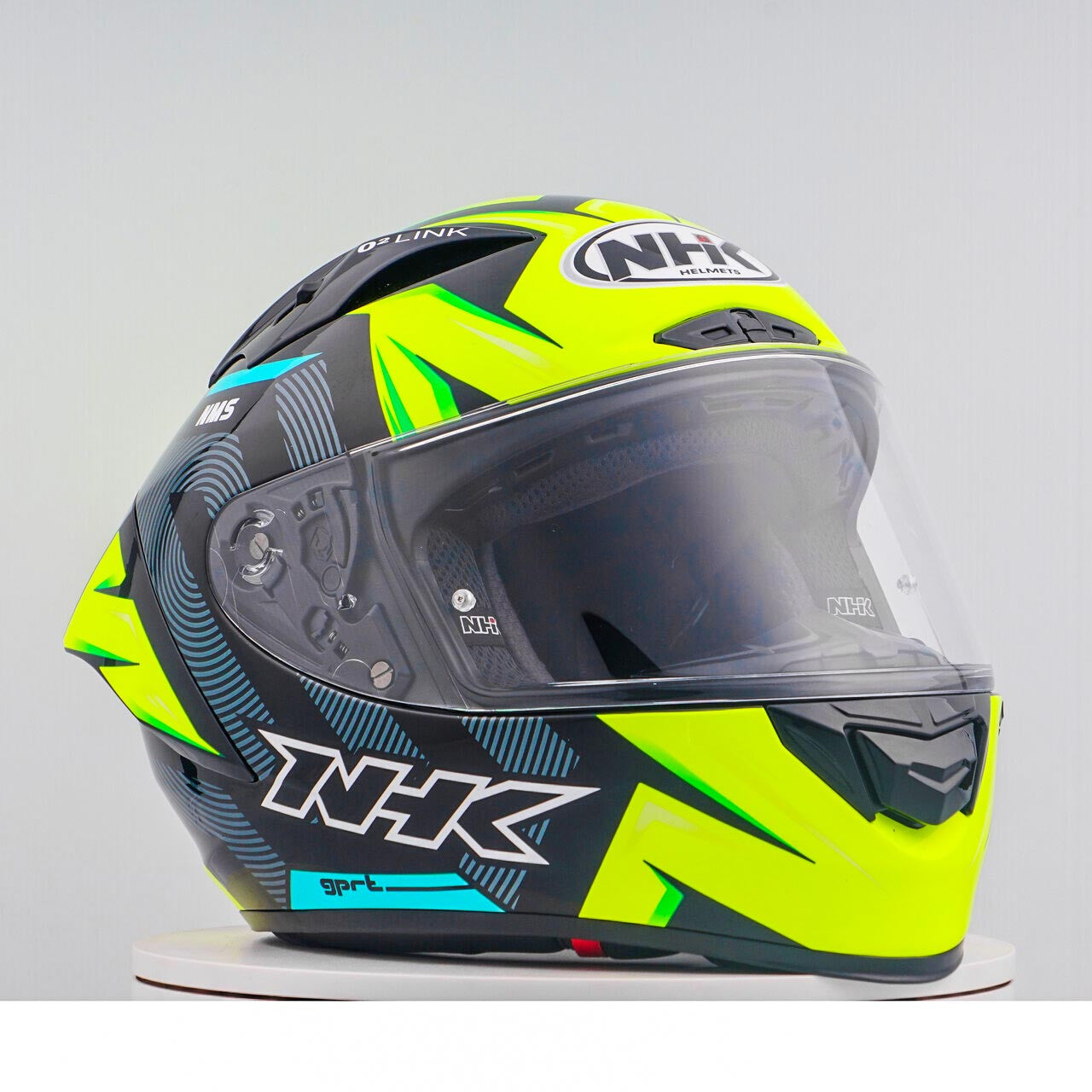 Erleben Sie den ultimativen Motorradhelm mit dem NHK GP-R Tech Race, der FIM-zugelassen ist und eine (AFRC) Advanced Fiberglass Reinforced Composite-Verbundschale in fünf Größen bietet, die perfekte Passform und Schutz garantiert. Der AFRC ist ein Verbundwerkstoff, der aus einer Matrix und Verstärkungsfasern besteht. Die Matrix ist in der Regel ein Polymer (z. B. Epoxidharz), während die Verstärkungsfasern aus Glasfasern bestehen. Mit neun Innenschalengrößen und zwölf Helmgrößen finden Sie immer die ideale Passform. Unser 4D-Air Lüftungssystem sorgt für eine optimale Belüftung und ein angenehmes Tragegefühl, während das Premium und komfortable Innenfutter höchsten Komfort bietet. Der Helm wurde aerodynamisch in den Klassen der MotoGP getestet und verfügt über ein flaches Visier mit "Wide Angle View" für ein erweitertes Sichtfeld. Das Pin-Lock & Tear-off-ready Visier gewährleistet klare Sicht unter allen Bedingungen. Dank des 100% vollmechanischen Visiersystems ist der Wechsel des Visiers einfach und schnell. Das herausnehmbare und waschbare Innenfutter sorgt für einfache Pflege und Hygiene. Der Helm ist zudem vorbereitet für einen "Camel-Bag" und kann problemlos mit Brille getragen werden. Das Doppel-D-Ring-Rückhaltesystem und die Wange zur Notabnahme bieten zusätzliche Sicherheit und Stabilität. Der Helm wurde im Windkanal getestet, um beste Leistung bei hoher Geschwindigkeit zu gewährleisten.