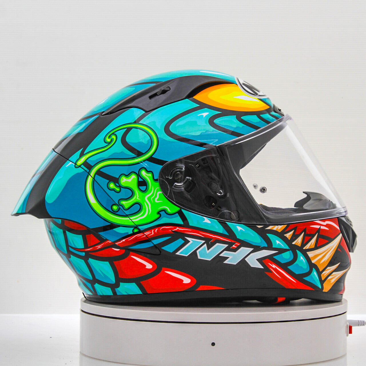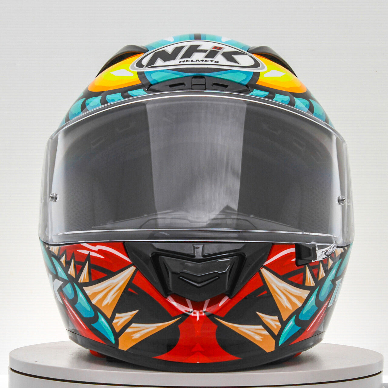 Erleben Sie den ultimativen Motorradhelm mit dem NHK GP-R Tech Race, der FIM-zugelassen ist und eine (AFRC) Advanced Fiberglass Reinforced Composite-Verbundschale in fünf Größen bietet, die perfekte Passform und Schutz garantiert. Der AFRC ist ein Verbundwerkstoff, der aus einer Matrix und Verstärkungsfasern besteht. Die Matrix ist in der Regel ein Polymer (z. B. Epoxidharz), während die Verstärkungsfasern aus Glasfasern bestehen. Mit neun Innenschalengrößen und zwölf Helmgrößen finden Sie immer die ideale Passform. Unser 4D-Air Lüftungssystem sorgt für eine optimale Belüftung und ein angenehmes Tragegefühl, während das Premium und komfortable Innenfutter höchsten Komfort bietet.Der Helm wurde aerodynamisch in den Klassen der MotoGP getestet und verfügt über ein flaches Visier mit "Wide Angle View" für ein erweitertes Sichtfeld. Das Pin-Lock & Tear-off-ready Visier gewährleistet klare Sicht unter allen Bedingungen. Dank des 100% vollmechanischen Visiersystems ist der Wechsel des Visiers einfach und schnell.Das herausnehmbare und waschbare Innenfutter sorgt für einfache Pflege und Hygiene. Der Helm ist zudem vorbereitet für einen "Camel-Bag" und kann problemlos mit Brille getragen werden. Das Doppel-D-Ring-Rückhaltesystem und die Wange zur Notabnahme bieten zusätzliche Sicherheit und Stabilität. Der Helm wurde im Windkanal getestet, um beste Leistung bei hoher Geschwindigkeit zu gewährleisten.