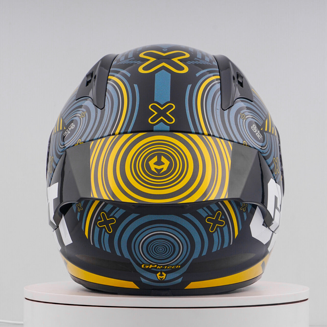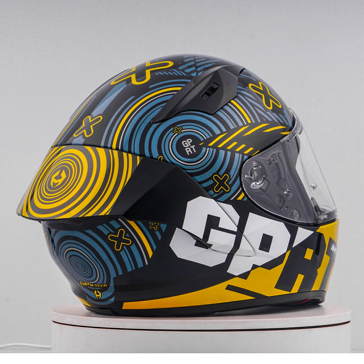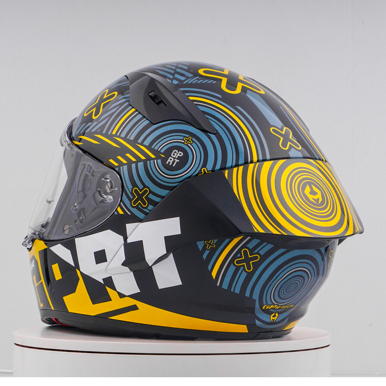 Erleben Sie den ultimativen Motorradhelm mit dem NHK GP-R Tech Race, der FIM-zugelassen ist und eine (AFRC) Advanced Fiberglass Reinforced Composite-Verbundschale in fünf Größen bietet, die perfekte Passform und Schutz garantiert. Der AFRC ist ein Verbundwerkstoff, der aus einer Matrix und Verstärkungsfasern besteht. Die Matrix ist in der Regel ein Polymer (z. B. Epoxidharz), während die Verstärkungsfasern aus Glasfasern bestehen. Mit neun Innenschalengrößen und zwölf Helmgrößen finden Sie immer die ideale Passform. Unser 4D-Air Lüftungssystem sorgt für eine optimale Belüftung und ein angenehmes Tragegefühl, während das Premium und komfortable Innenfutter höchsten Komfort bietet. Der Helm wurde aerodynamisch in den Klassen der MotoGP getestet und verfügt über ein flaches Visier mit "Wide Angle View" für ein erweitertes Sichtfeld. Das Pin-Lock & Tear-off-ready Visier gewährleistet klare Sicht unter allen Bedingungen. Dank des 100% vollmechanischen Visiersystems ist der Wechsel des Visiers einfach und schnell. Das herausnehmbare und waschbare Innenfutter sorgt für einfache Pflege und Hygiene. Der Helm ist zudem vorbereitet für einen "Camel-Bag" und kann problemlos mit Brille getragen werden. Das Doppel-D-Ring-Rückhaltesystem und die Wange zur Notabnahme bieten zusätzliche Sicherheit und Stabilität. Der Helm wurde im Windkanal getestet, um beste Leistung bei hoher Geschwindigkeit zu gewährleisten.