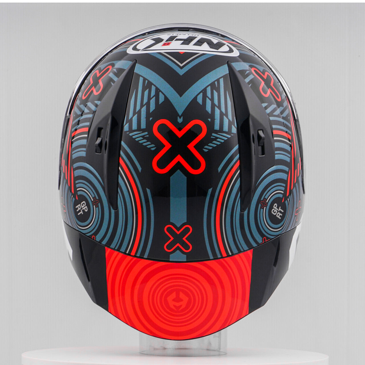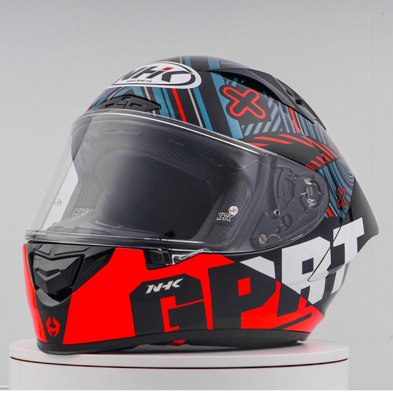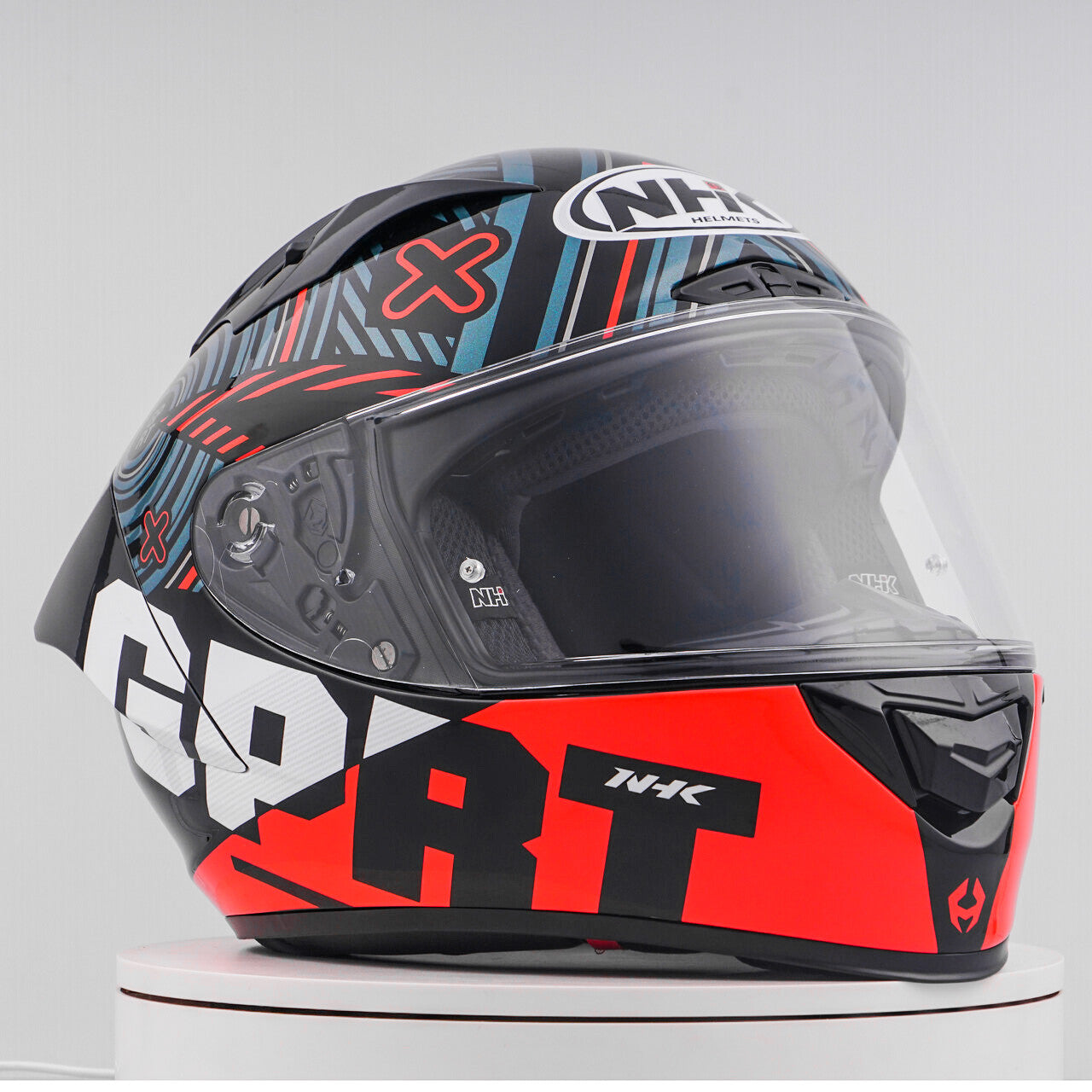 Erleben Sie den ultimativen Motorradhelm mit dem NHK GP-R Tech Race, der FIM-zugelassen ist und eine (AFRC) Advanced Fiberglass Reinforced Composite-Verbundschale in fünf Größen bietet, die perfekte Passform und Schutz garantiert. Der AFRC ist ein Verbundwerkstoff, der aus einer Matrix und Verstärkungsfasern besteht. Die Matrix ist in der Regel ein Polymer (z. B. Epoxidharz), während die Verstärkungsfasern aus Glasfasern bestehen. Mit neun Innenschalengrößen und zwölf Helmgrößen finden Sie immer die ideale Passform. Unser 4D-Air Lüftungssystem sorgt für eine optimale Belüftung und ein angenehmes Tragegefühl, während das Premium und komfortable Innenfutter höchsten Komfort bietet.Der Helm wurde aerodynamisch in den Klassen der MotoGP getestet und verfügt über ein flaches Visier mit "Wide Angle View" für ein erweitertes Sichtfeld. Das Pin-Lock & Tear-off-ready Visier gewährleistet klare Sicht unter allen Bedingungen. Dank des 100% vollmechanischen Visiersystems ist der Wechsel des Visiers einfach und schnell.Das herausnehmbare und waschbare Innenfutter sorgt für einfache Pflege und Hygiene. Der Helm ist zudem vorbereitet für einen "Camel-Bag" und kann problemlos mit Brille getragen werden. Das Doppel-D-Ring-Rückhaltesystem und die Wange zur Notabnahme bieten zusätzliche Sicherheit und Stabilität. Der Helm wurde im Windkanal getestet, um beste Leistung bei hoher Geschwindigkeit zu gewährleisten.