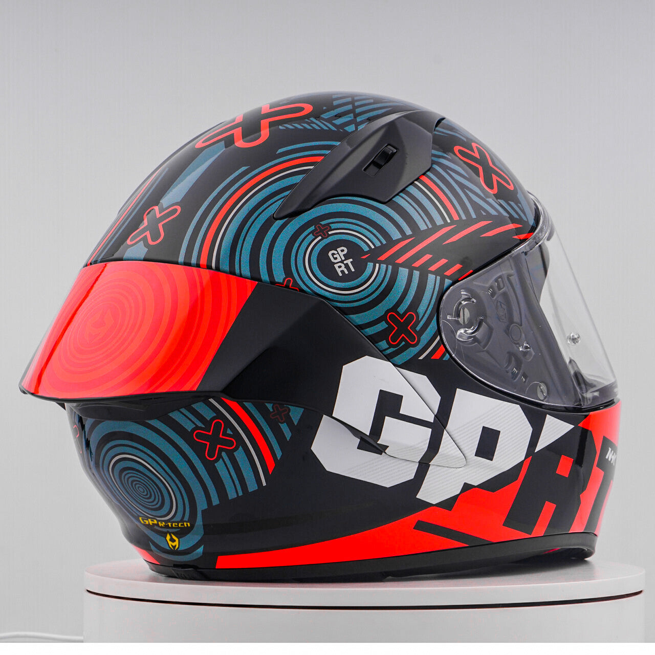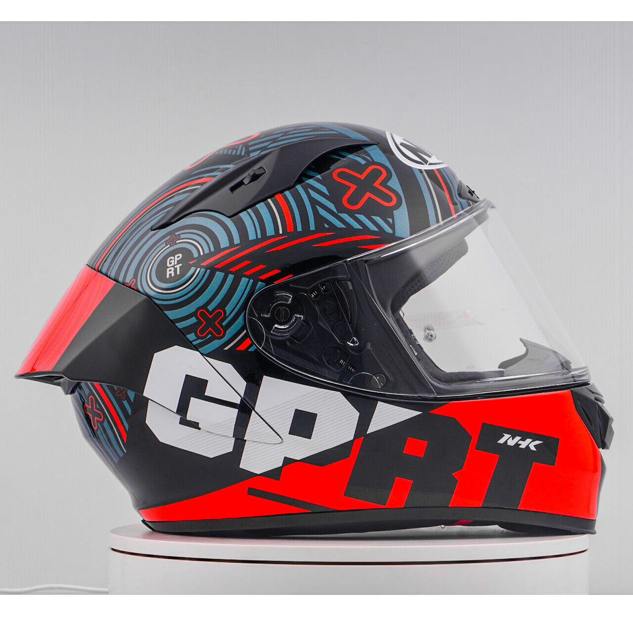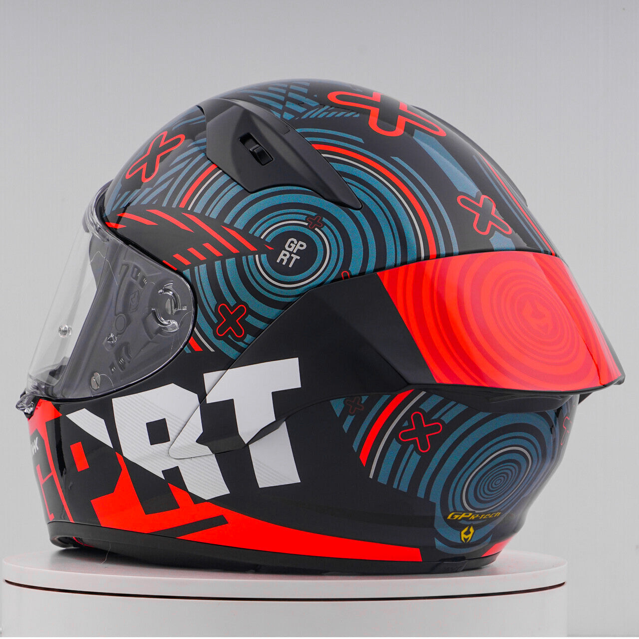 Erleben Sie den ultimativen Motorradhelm mit dem NHK GP-R Tech Race, der FIM-zugelassen ist und eine (AFRC) Advanced Fiberglass Reinforced Composite-Verbundschale in fünf Größen bietet, die perfekte Passform und Schutz garantiert. Der AFRC ist ein Verbundwerkstoff, der aus einer Matrix und Verstärkungsfasern besteht. Die Matrix ist in der Regel ein Polymer (z. B. Epoxidharz), während die Verstärkungsfasern aus Glasfasern bestehen. Mit neun Innenschalengrößen und zwölf Helmgrößen finden Sie immer die ideale Passform. Unser 4D-Air Lüftungssystem sorgt für eine optimale Belüftung und ein angenehmes Tragegefühl, während das Premium und komfortable Innenfutter höchsten Komfort bietet.Der Helm wurde aerodynamisch in den Klassen der MotoGP getestet und verfügt über ein flaches Visier mit "Wide Angle View" für ein erweitertes Sichtfeld. Das Pin-Lock & Tear-off-ready Visier gewährleistet klare Sicht unter allen Bedingungen. Dank des 100% vollmechanischen Visiersystems ist der Wechsel des Visiers einfach und schnell.Das herausnehmbare und waschbare Innenfutter sorgt für einfache Pflege und Hygiene. Der Helm ist zudem vorbereitet für einen "Camel-Bag" und kann problemlos mit Brille getragen werden. Das Doppel-D-Ring-Rückhaltesystem und die Wange zur Notabnahme bieten zusätzliche Sicherheit und Stabilität. Der Helm wurde im Windkanal getestet, um beste Leistung bei hoher Geschwindigkeit zu gewährleisten.