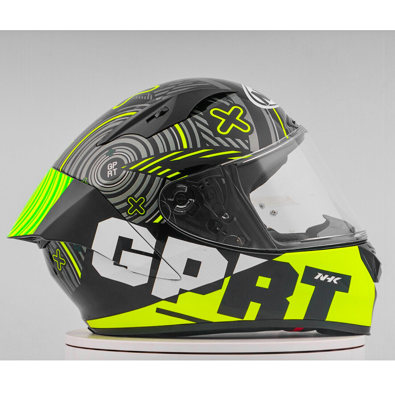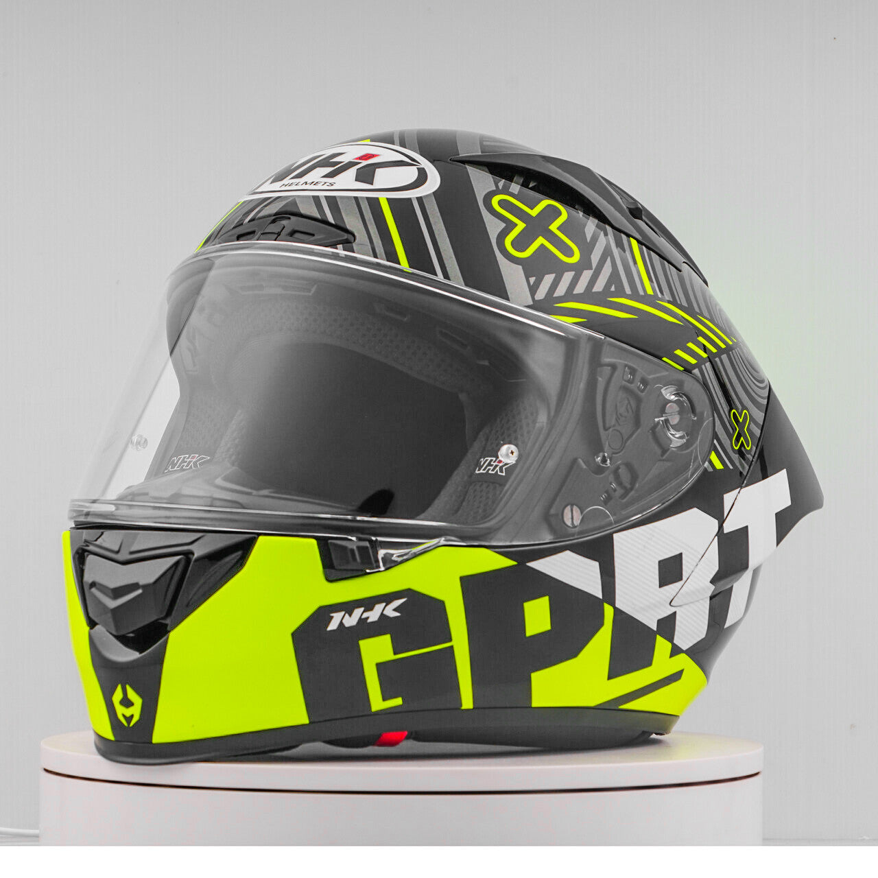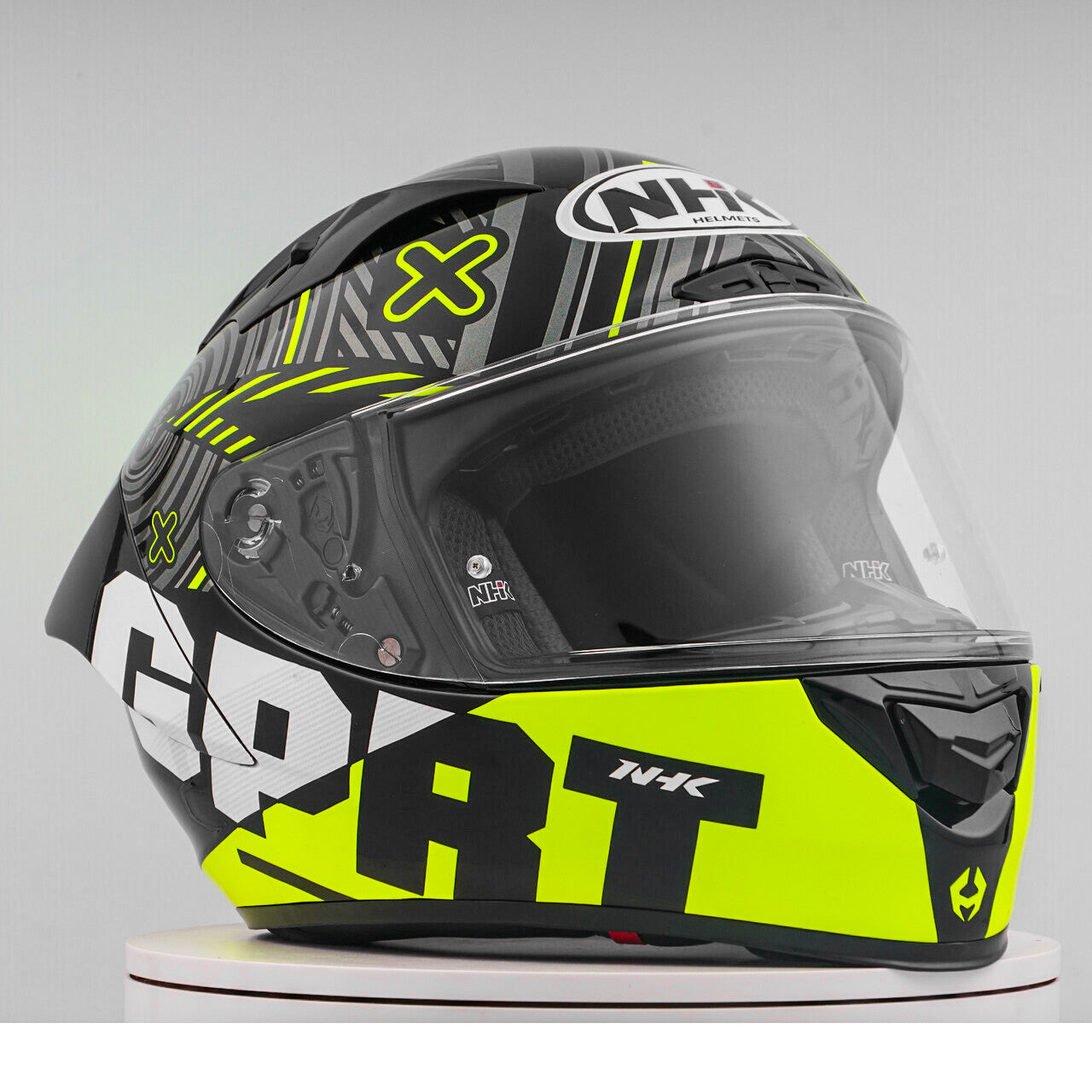 Erleben Sie den ultimativen Motorradhelm mit dem NHK GP-R Tech Race, der FIM-zugelassen ist und eine (AFRC) Advanced Fiberglass Reinforced Composite-Verbundschale in fünf Größen bietet, die perfekte Passform und Schutz garantiert. Der AFRC ist ein Verbundwerkstoff, der aus einer Matrix und Verstärkungsfasern besteht. Die Matrix ist in der Regel ein Polymer (z. B. Epoxidharz), während die Verstärkungsfasern aus Glasfasern bestehen. Mit neun Innenschalengrößen und zwölf Helmgrößen finden Sie immer die ideale Passform. Unser 4D-Air Lüftungssystem sorgt für eine optimale Belüftung und ein angenehmes Tragegefühl, während das Premium und komfortable Innenfutter höchsten Komfort bietet. Der Helm wurde aerodynamisch in den Klassen der MotoGP getestet und verfügt über ein flaches Visier mit "Wide Angle View" für ein erweitertes Sichtfeld. Das Pin-Lock & Tear-off-ready Visier gewährleistet klare Sicht unter allen Bedingungen. Dank des 100% vollmechanischen Visiersystems ist der Wechsel des Visiers einfach und schnell. Das herausnehmbare und waschbare Innenfutter sorgt für einfache Pflege und Hygiene. Der Helm ist zudem vorbereitet für einen "Camel-Bag" und kann problemlos mit Brille getragen werden. Das Doppel-D-Ring-Rückhaltesystem und die Wange zur Notabnahme bieten zusätzliche Sicherheit und Stabilität. Der Helm wurde im Windkanal getestet, um beste Leistung bei hoher Geschwindigkeit zu gewährleisten.