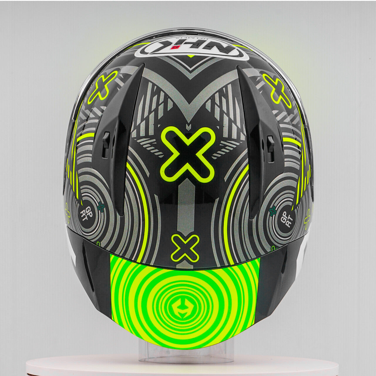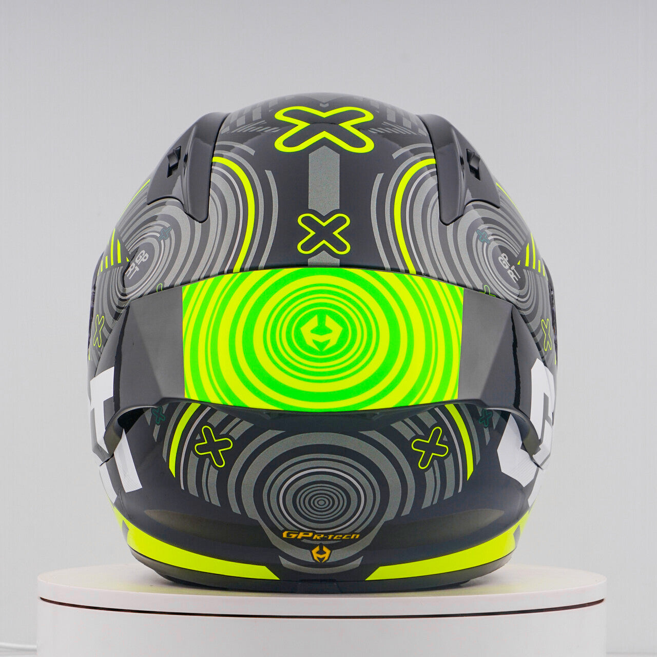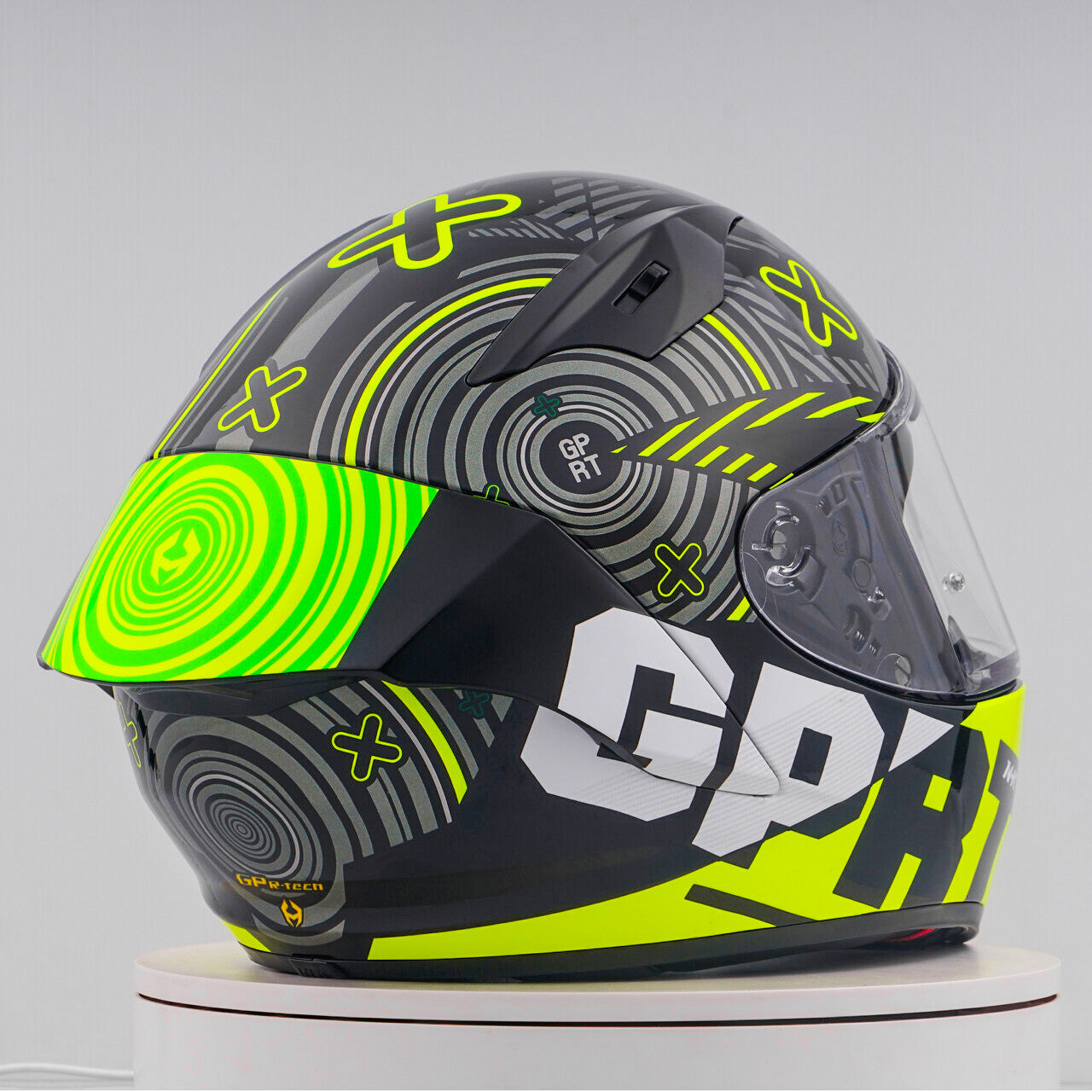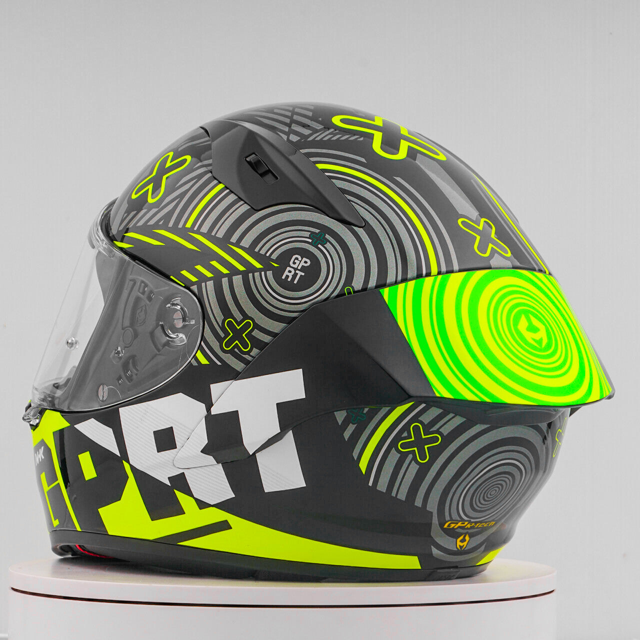 Erleben Sie den ultimativen Motorradhelm mit dem NHK GP-R Tech Race, der FIM-zugelassen ist und eine (AFRC) Advanced Fiberglass Reinforced Composite-Verbundschale in fünf Größen bietet, die perfekte Passform und Schutz garantiert. Der AFRC ist ein Verbundwerkstoff, der aus einer Matrix und Verstärkungsfasern besteht. Die Matrix ist in der Regel ein Polymer (z. B. Epoxidharz), während die Verstärkungsfasern aus Glasfasern bestehen. Mit neun Innenschalengrößen und zwölf Helmgrößen finden Sie immer die ideale Passform. Unser 4D-Air Lüftungssystem sorgt für eine optimale Belüftung und ein angenehmes Tragegefühl, während das Premium und komfortable Innenfutter höchsten Komfort bietet. Der Helm wurde aerodynamisch in den Klassen der MotoGP getestet und verfügt über ein flaches Visier mit "Wide Angle View" für ein erweitertes Sichtfeld. Das Pin-Lock & Tear-off-ready Visier gewährleistet klare Sicht unter allen Bedingungen. Dank des 100% vollmechanischen Visiersystems ist der Wechsel des Visiers einfach und schnell. Das herausnehmbare und waschbare Innenfutter sorgt für einfache Pflege und Hygiene. Der Helm ist zudem vorbereitet für einen "Camel-Bag" und kann problemlos mit Brille getragen werden. Das Doppel-D-Ring-Rückhaltesystem und die Wange zur Notabnahme bieten zusätzliche Sicherheit und Stabilität. Der Helm wurde im Windkanal getestet, um beste Leistung bei hoher Geschwindigkeit zu gewährleisten.