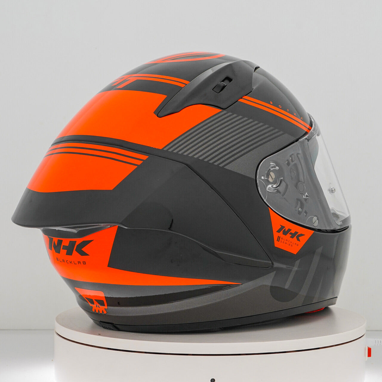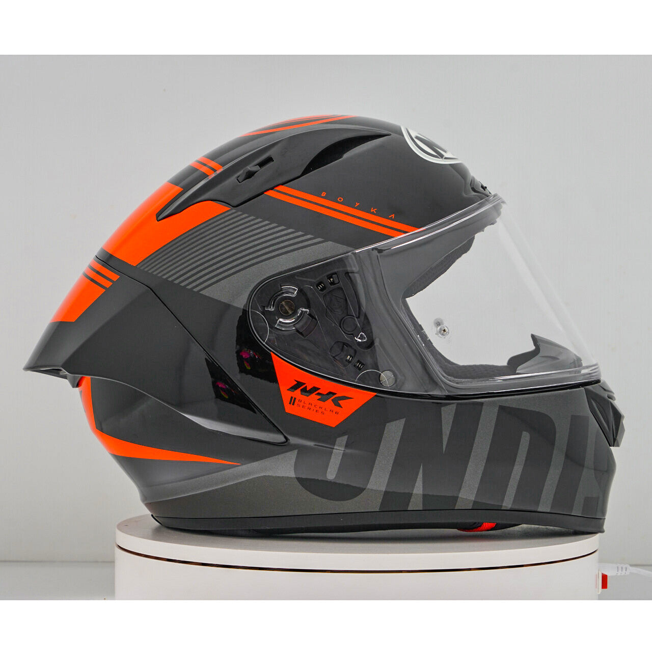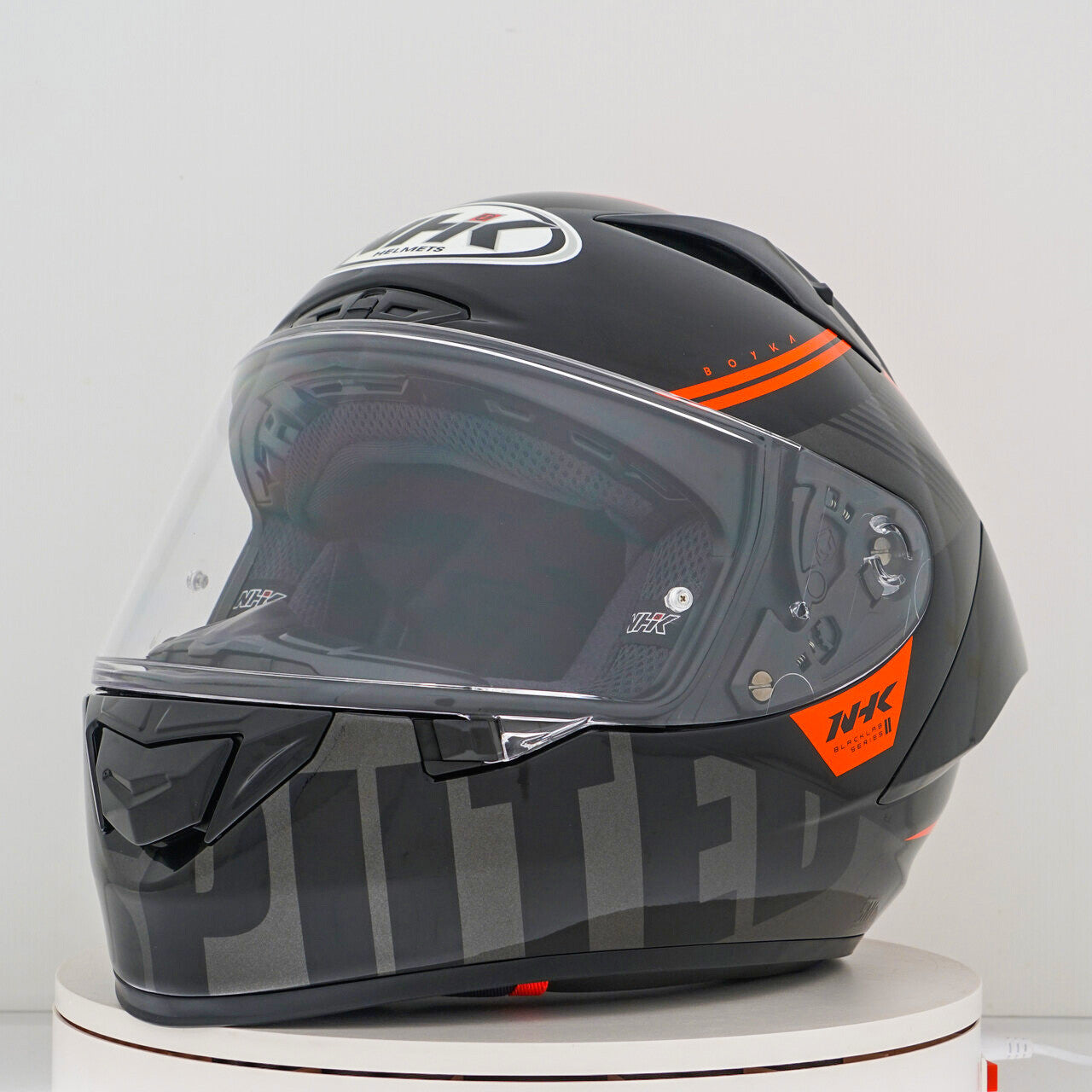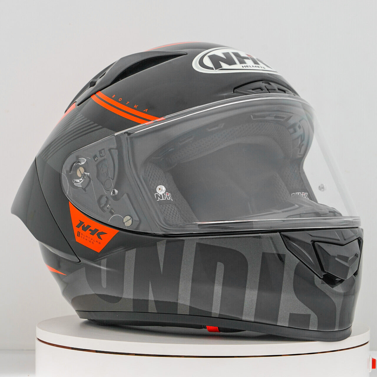 Erleben Sie den ultimativen Motorradhelm mit dem NHK GP-R Tech Race, der FIM-zugelassen ist und eine (AFRC) Advanced Fiberglass Reinforced Composite-Verbundschale in fünf Größen bietet, die perfekte Passform und Schutz garantiert. Der AFRC ist ein Verbundwerkstoff, der aus einer Matrix und Verstärkungsfasern besteht. Die Matrix ist in der Regel ein Polymer (z. B. Epoxidharz), während die Verstärkungsfasern aus Glasfasern bestehen. Mit neun Innenschalengrößen und zwölf Helmgrößen finden Sie immer die ideale Passform. Unser 4D-Air Lüftungssystem sorgt für eine optimale Belüftung und ein angenehmes Tragegefühl, während das Premium und komfortable Innenfutter höchsten Komfort bietet. Der Helm wurde aerodynamisch in den Klassen der MotoGP getestet und verfügt über ein flaches Visier mit "Wide Angle View" für ein erweitertes Sichtfeld. Das Pin-Lock & Tear-off-ready Visier gewährleistet klare Sicht unter allen Bedingungen. Dank des 100% vollmechanischen Visiersystems ist der Wechsel des Visiers einfach und schnell. Das herausnehmbare und waschbare Innenfutter sorgt für einfache Pflege und Hygiene. Der Helm ist zudem vorbereitet für einen "Camel-Bag" und kann problemlos mit Brille getragen werden. Das Doppel-D-Ring-Rückhaltesystem und die Wange zur Notabnahme bieten zusätzliche Sicherheit und Stabilität. Der Helm wurde im Windkanal getestet, um beste Leistung bei hoher Geschwindigkeit zu gewährleisten.