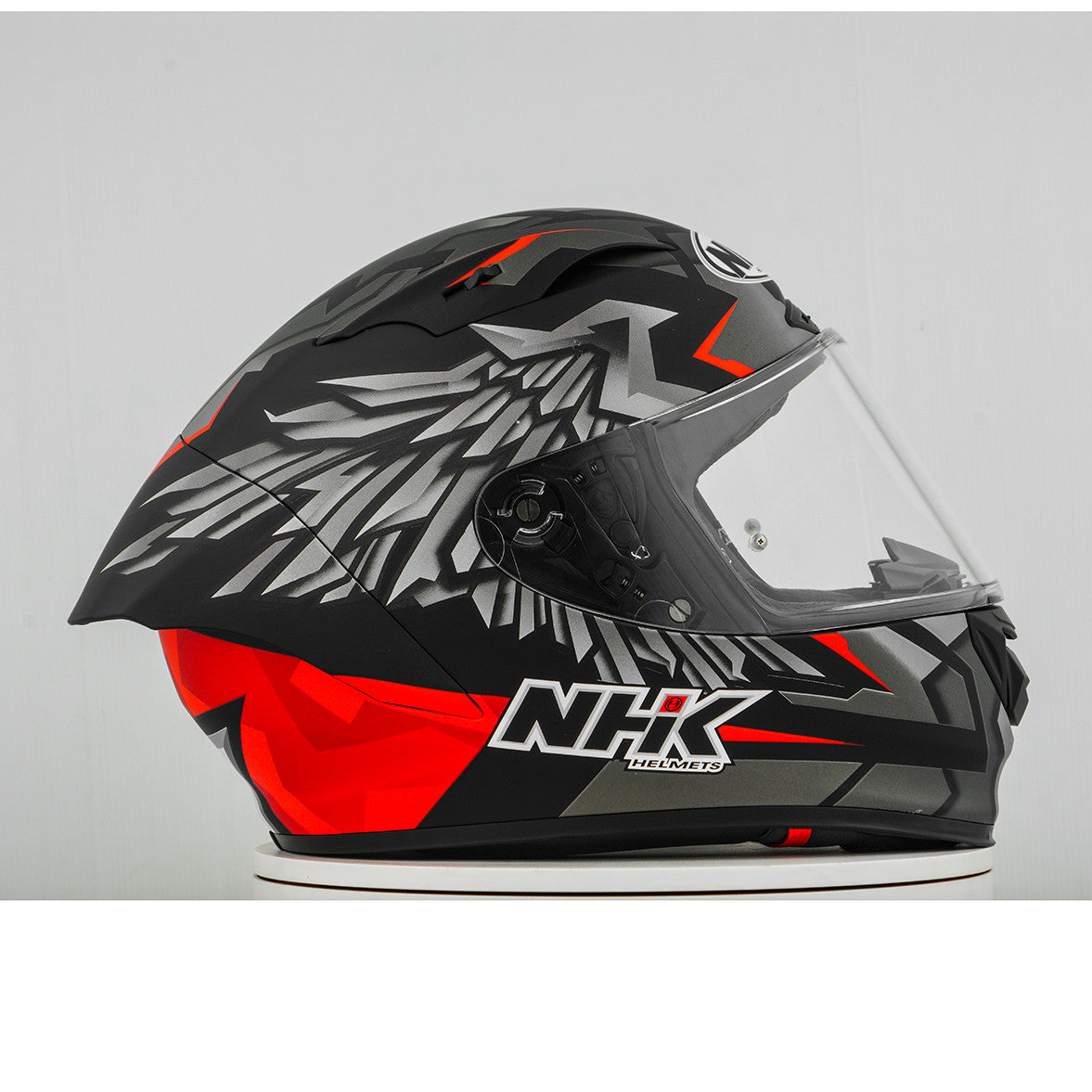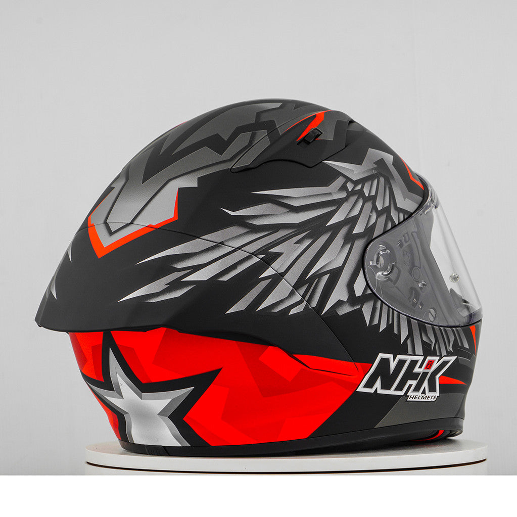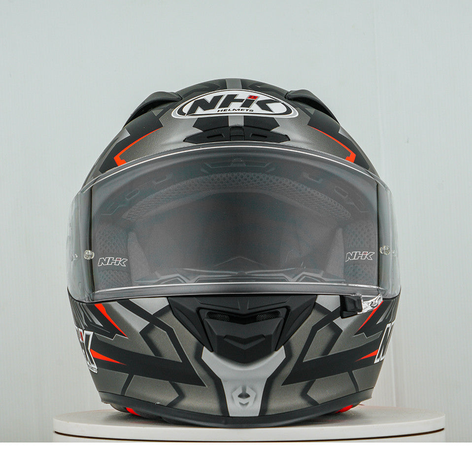Erleben Sie den ultimativen Motorradhelm mit dem NHK GP-R Tech Race, der FIM-zugelassen ist und eine (AFRC) Advanced Fiberglass Reinforced Composite-Verbundschale in fünf Größen bietet, die perfekte Passform und Schutz garantiert. Der AFRC ist ein Verbundwerkstoff, der aus einer Matrix und Verstärkungsfasern besteht. Die Matrix ist in der Regel ein Polymer (z. B. Epoxidharz), während die Verstärkungsfasern aus Glasfasern bestehen. Mit neun Innenschalengrößen und zwölf Helmgrößen finden Sie immer die ideale Passform. Unser 4D-Air Lüftungssystem sorgt für eine optimale Belüftung und ein angenehmes Tragegefühl, während das Premium und komfortable Innenfutter höchsten Komfort bietet. Der Helm wurde aerodynamisch in den Klassen der MotoGP getestet und verfügt über ein flaches Visier mit "Wide Angle View" für ein erweitertes Sichtfeld. Das Pin-Lock & Tear-off-ready Visier gewährleistet klare Sicht unter allen Bedingungen. Dank des 100% vollmechanischen Visiersystems ist der Wechsel des Visiers einfach und schnell. Das herausnehmbare und waschbare Innenfutter sorgt für einfache Pflege und Hygiene. Der Helm ist zudem vorbereitet für einen "Camel-Bag" und kann problemlos mit Brille getragen werden. Das Doppel-D-Ring-Rückhaltesystem und die Wange zur Notabnahme bieten zusätzliche Sicherheit und Stabilität. Der Helm wurde im Windkanal getestet, um beste Leistung bei hoher Geschwindigkeit zu gewährleisten.