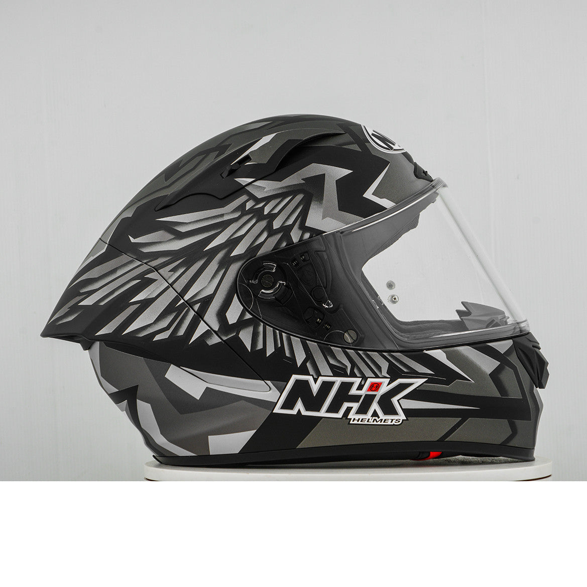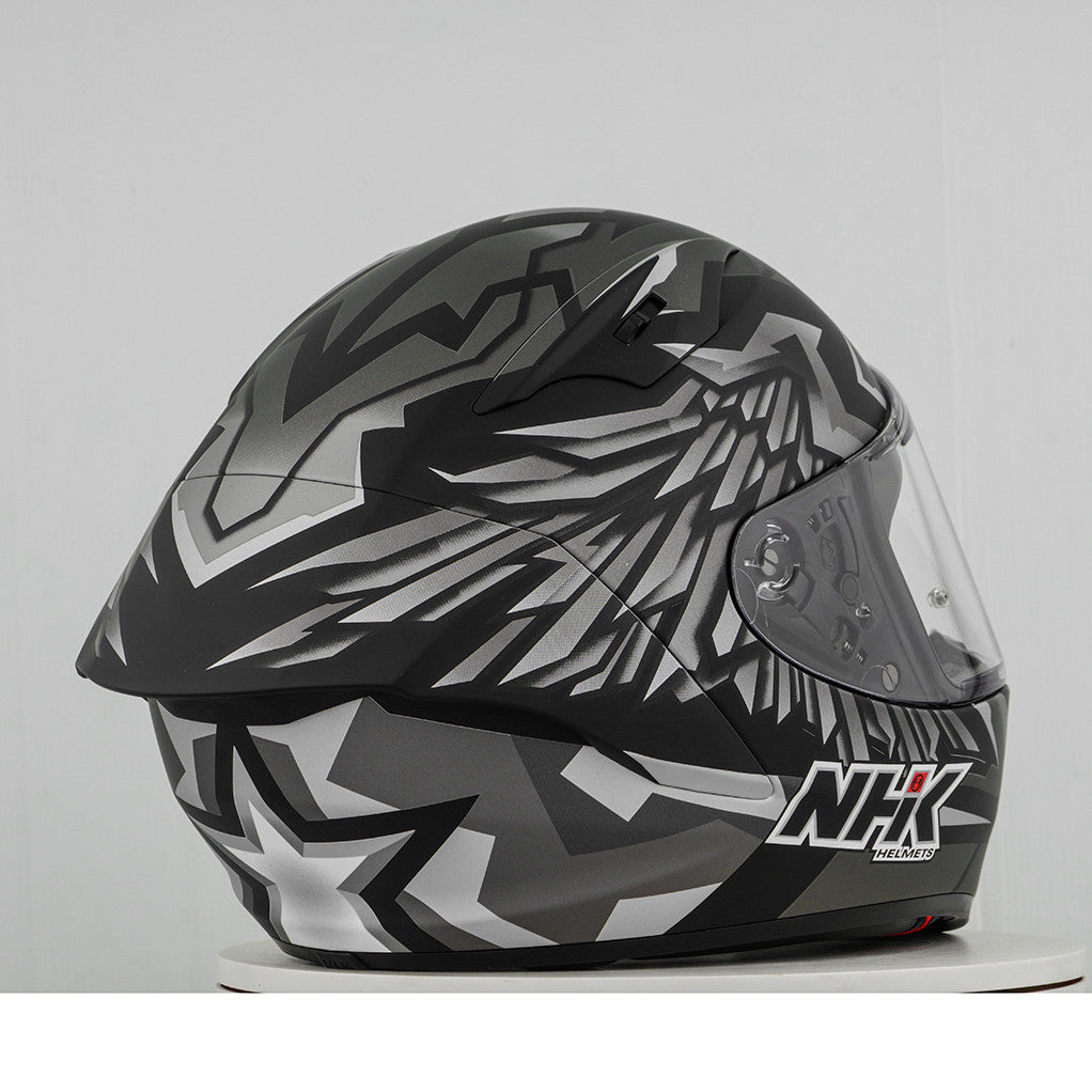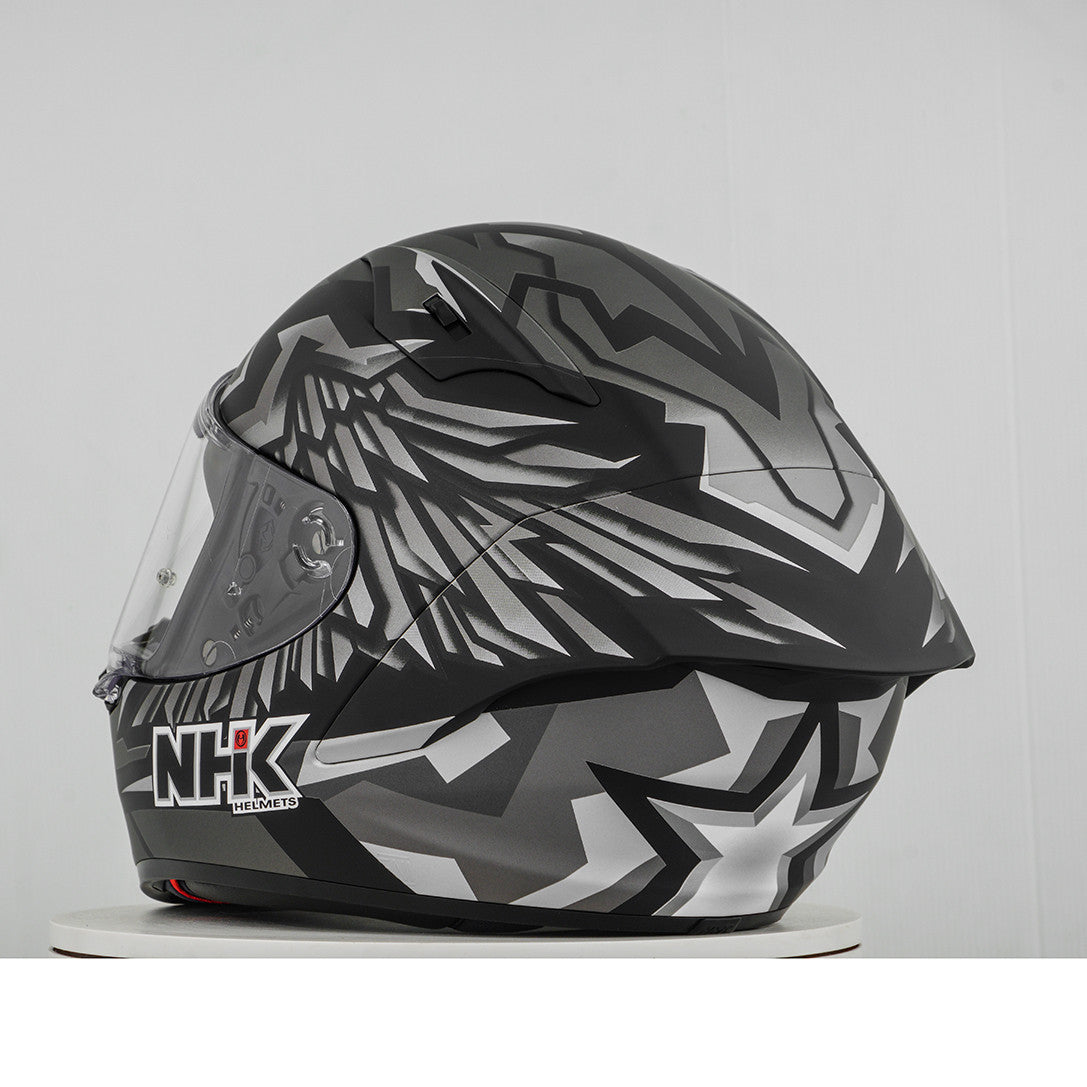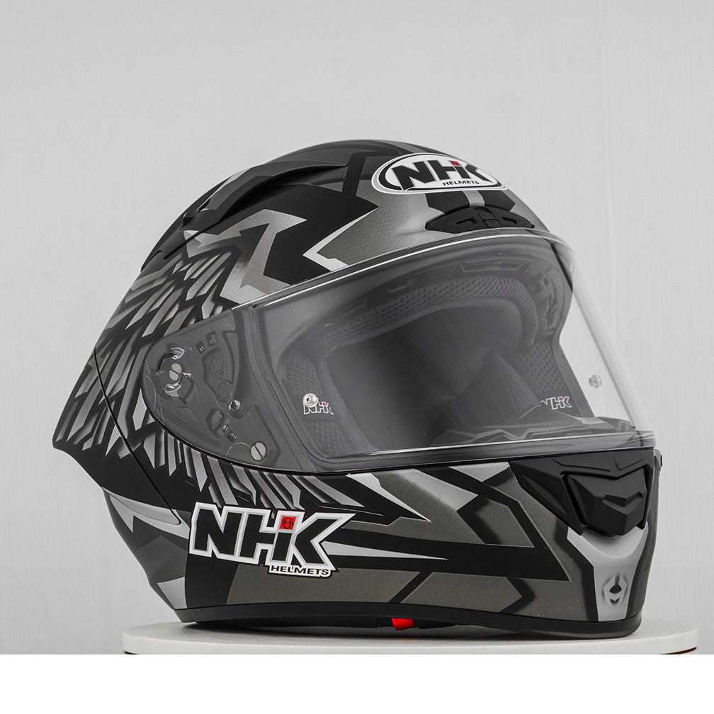 Erleben Sie den ultimativen Motorradhelm mit dem NHK GP-R Tech Race, der FIM-zugelassen ist und eine (AFRC) Advanced Fiberglass Reinforced Composite-Verbundschale in fünf Größen bietet, die perfekte Passform und Schutz garantiert. Der AFRC ist ein Verbundwerkstoff, der aus einer Matrix und Verstärkungsfasern besteht. Die Matrix ist in der Regel ein Polymer (z. B. Epoxidharz), während die Verstärkungsfasern aus Glasfasern bestehen. Mit neun Innenschalengrößen und zwölf Helmgrößen finden Sie immer die ideale Passform. Unser 4D-Air Lüftungssystem sorgt für eine optimale Belüftung und ein angenehmes Tragegefühl, während das Premium und komfortable Innenfutter höchsten Komfort bietet. Der Helm wurde aerodynamisch in den Klassen der MotoGP getestet und verfügt über ein flaches Visier mit "Wide Angle View" für ein erweitertes Sichtfeld. Das Pin-Lock & Tear-off-ready Visier gewährleistet klare Sicht unter allen Bedingungen. Dank des 100% vollmechanischen Visiersystems ist der Wechsel des Visiers einfach und schnell. Das herausnehmbare und waschbare Innenfutter sorgt für einfache Pflege und Hygiene. Der Helm ist zudem vorbereitet für einen "Camel-Bag" und kann problemlos mit Brille getragen werden. Das Doppel-D-Ring-Rückhaltesystem und die Wange zur Notabnahme bieten zusätzliche Sicherheit und Stabilität. Der Helm wurde im Windkanal getestet, um beste Leistung bei hoher Geschwindigkeit zu gewährleisten.