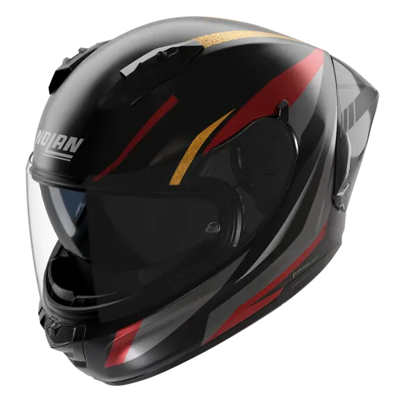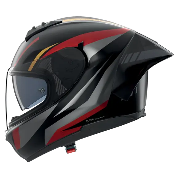 Der Nolan N60-6 Sport Lesmo Schwarz / Rot / Gold 353 ist der Inbegriff von italienischer Handwerkskunst, aerodynamischer Präzision und sportlicher Eleganz.