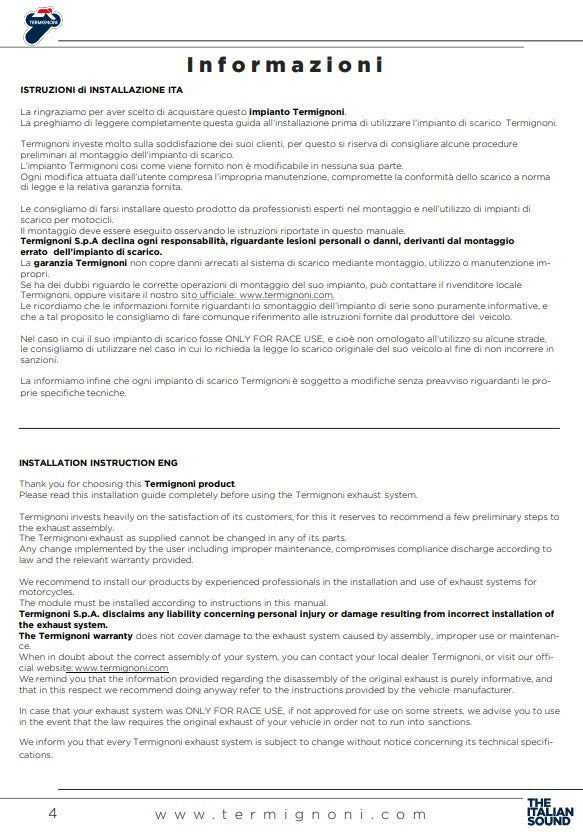 - Homologiert: Straßenzulassung mit E-Nummer – Erfüllt Euro 4 Normen und ist somit für den Straßenverkehr zugelassen.