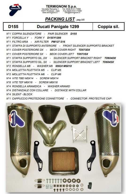 Termignoni Slip-On Kit Carbon Ducati Panigale 1299/S (15-18) D155102CPT+D155Y2